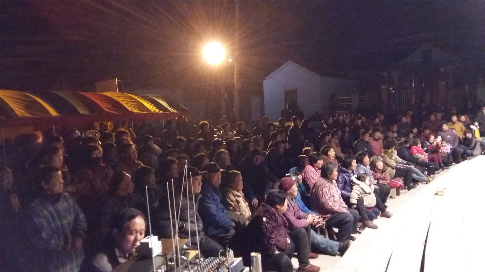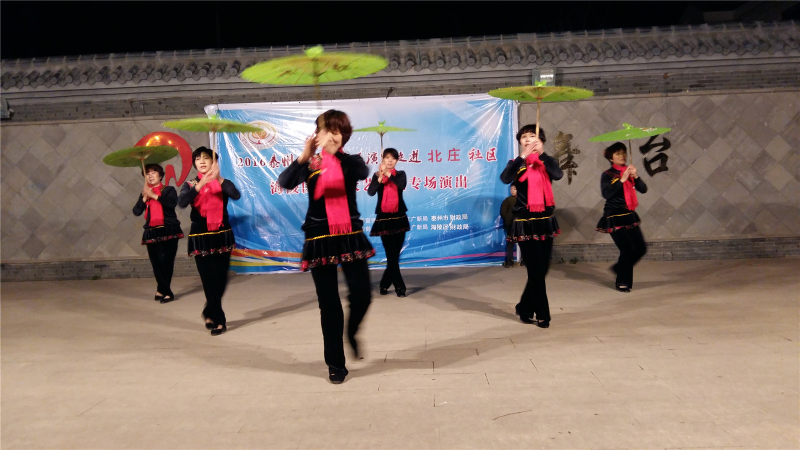 夜色下,老大妈演员们努力地将每个节目演绎的精彩纷呈,全场不时爆发出阵阵掌声。我们北庄村的农民剧社也来凑凑热闹,穿插了平时拿手的几个节目,借助艺术团的声势,作了一个精彩的亮相。