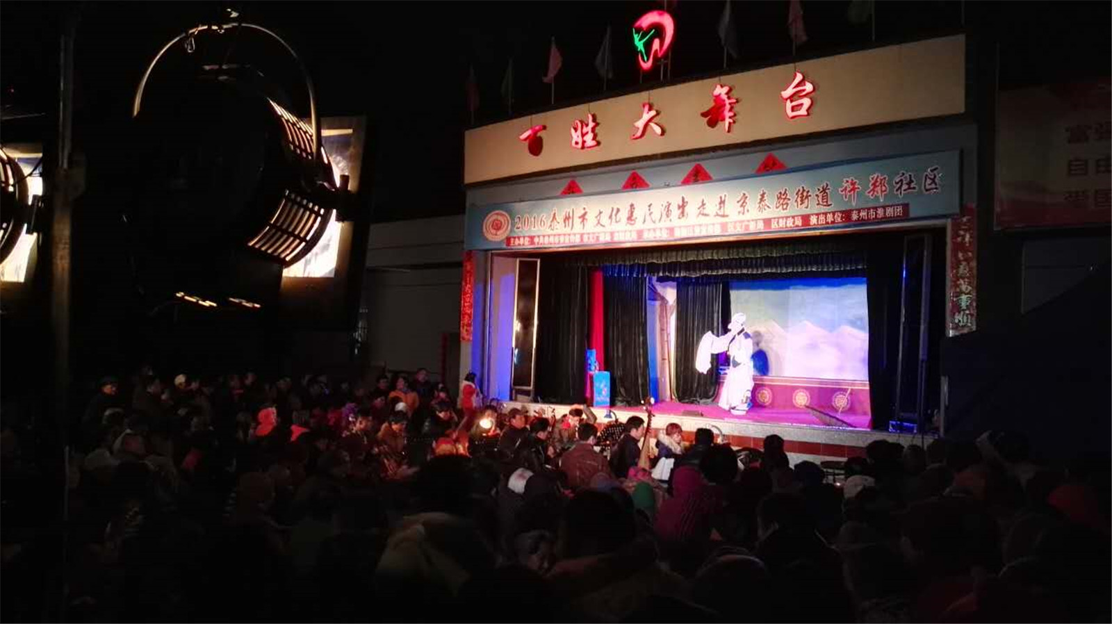 演出前期社区按照淮剧团的要求做了精心准备,3月25日晚,泰州淮剧团一班人给我社区的居民送上了一场精彩的演出,演出剧目为《珍珠塔》。尽管当日天气较冷,现场观看的居民约有六、七百人,一直到演出结束都还在讨论,热情不减,居民纷纷表示演出很精彩,只演一场太少了。