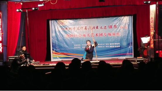 为进一步丰富基层群众文化生活,3月28日晚,来自海陵区小雨天艺术团的文化工作者们带着精心编排的节目走进苏陈镇镇东社区,为村民们送上了一场精彩的文艺演出。