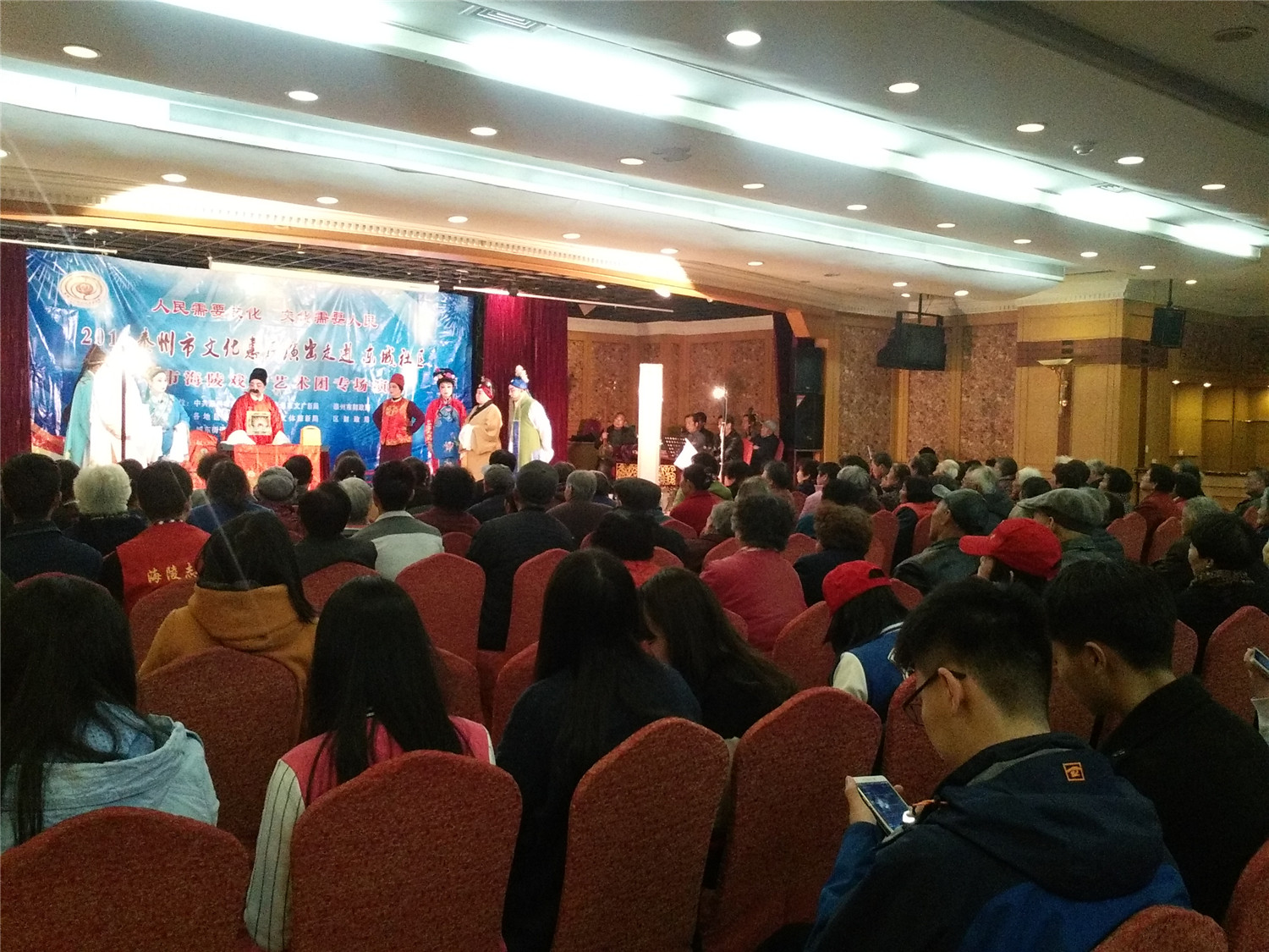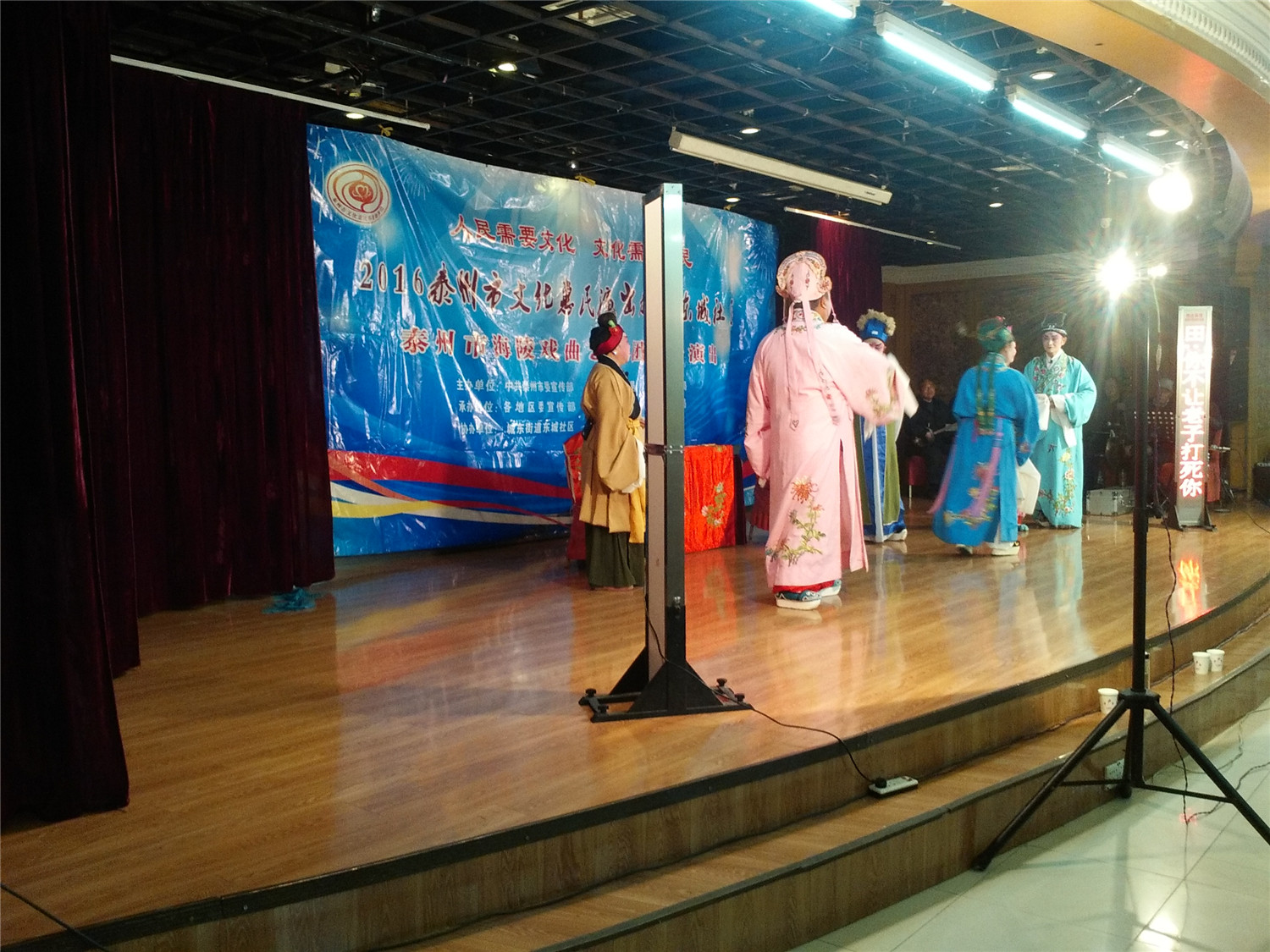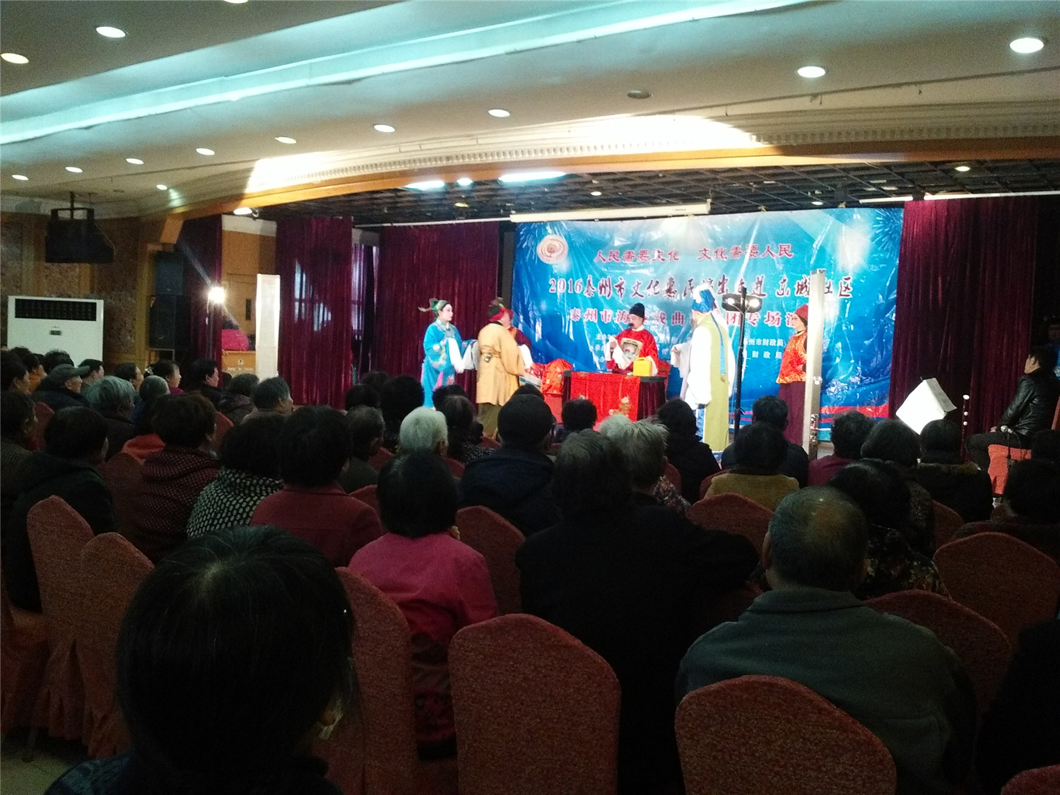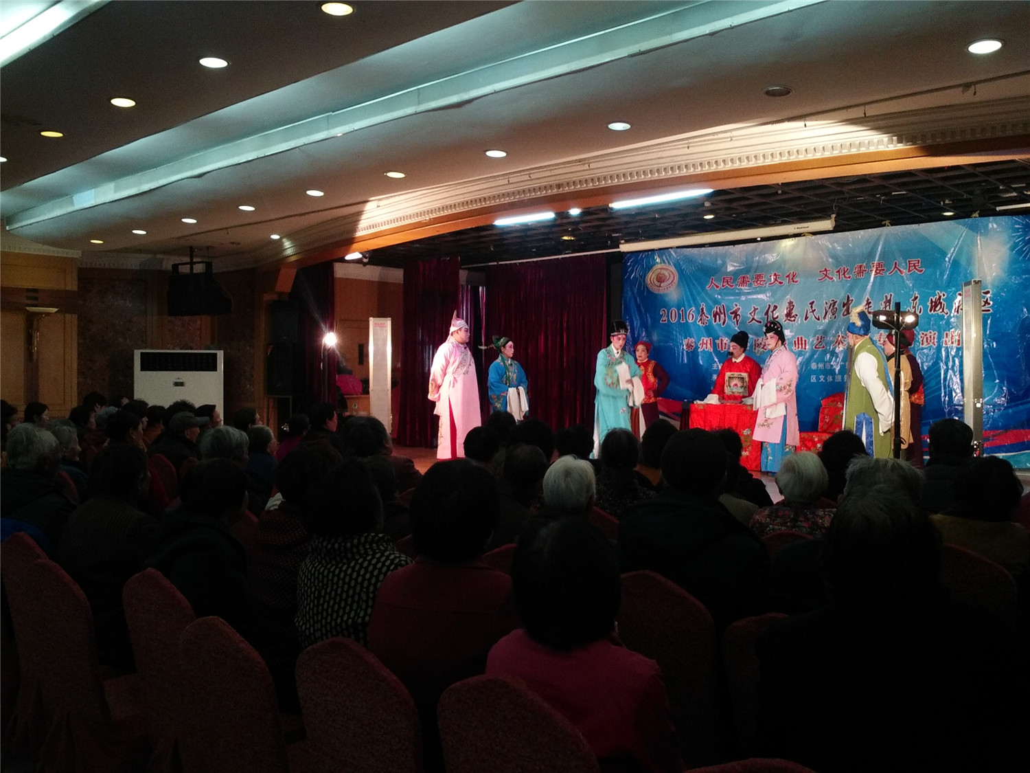 3月29日下午,东城社区在原野大酒店三楼,邀请海陵区戏曲艺术团给东城社区居民奉献了一场精彩扬剧《挑女婿》,扬剧《小尼姑下山》及淮剧传统戏精彩片断。外面春寒料峭,原野大酒店里面掌声雷动,其乐融融。