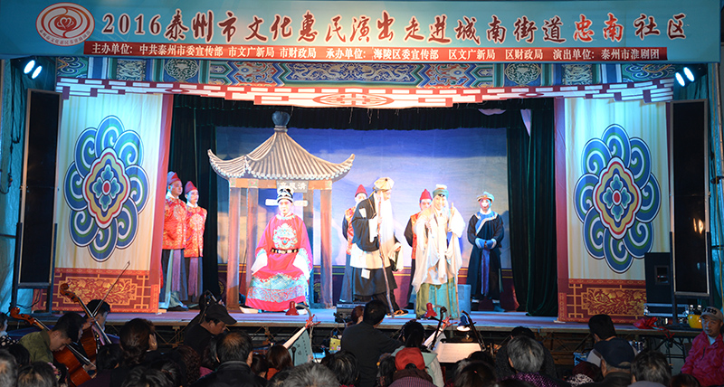 泰州市淮剧团4月1日、4月2日文化惠民演出走进海陵区城南街道忠南社区,为社区居民带来了两台大型优秀传统淮剧《腊月雷》、《周仁献嫂》,每场观众多达数千人次,盛况空前,精彩的传统剧目加上演员深厚的功底、高超的演技赢得了数千观众阵阵掌声,现场叫好声不断。