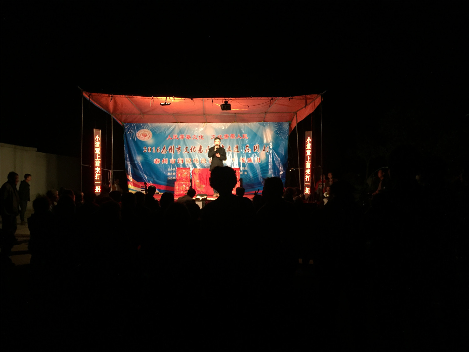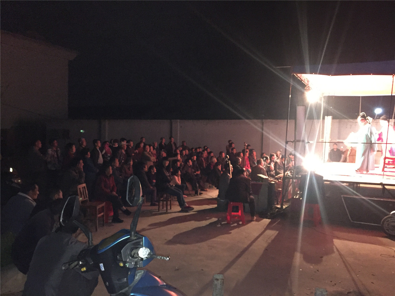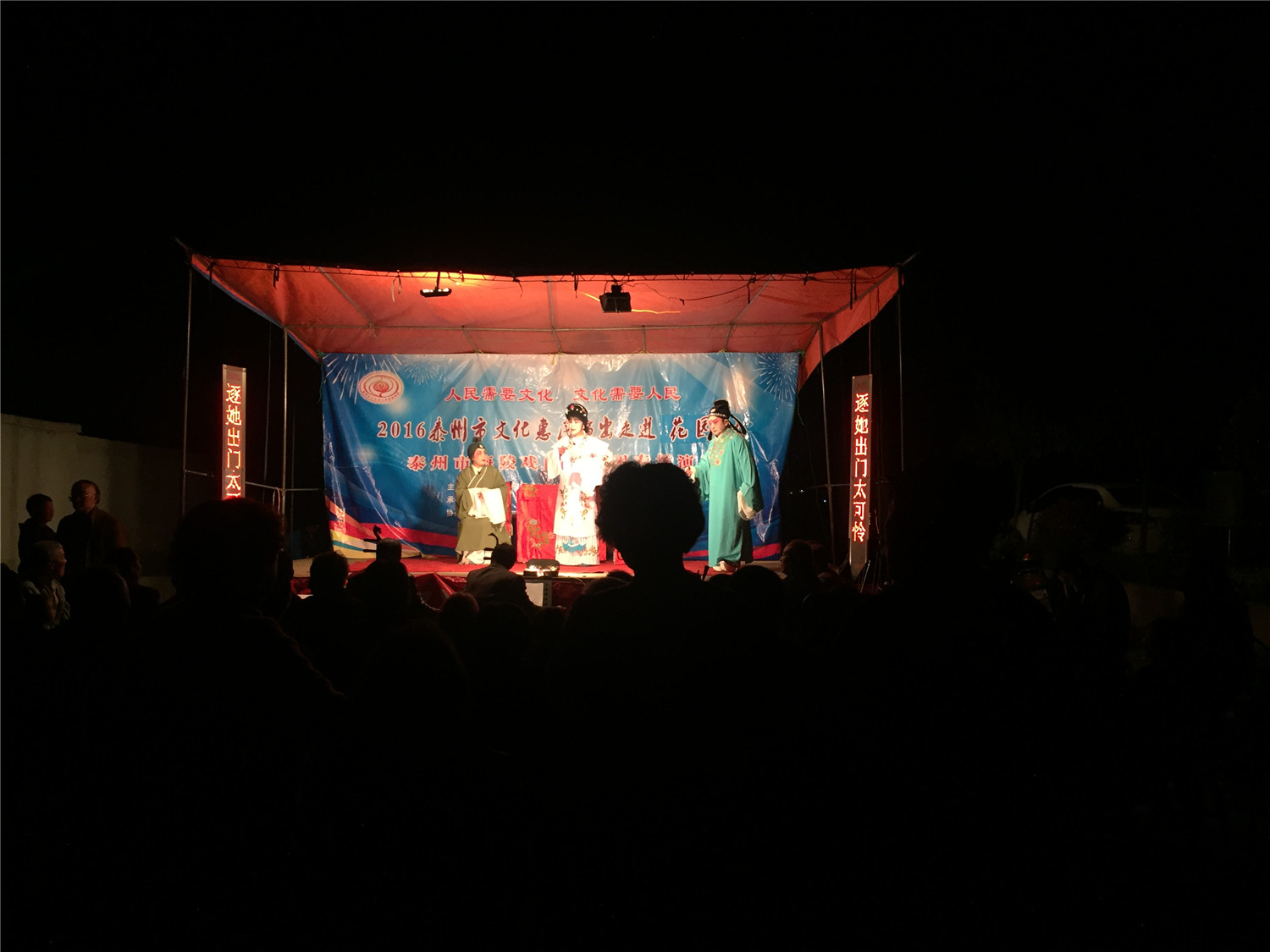 4月8日晚,泰州文化惠民演出走进花园村,泰州市海陵戏曲艺术团为村民献上一场戏剧大餐。