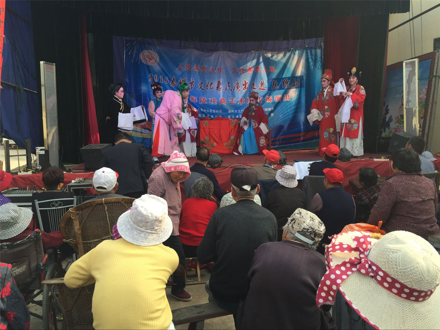 2016年4月10日下午,海陵戏曲艺术团受邀来到魏徐村,为村民带来了一场精彩的戏曲演出。演员们惟妙惟肖的表演,博得了广大村民的阵阵掌声!专业的戏曲就在家门口上演,村民们近距离地感受到了戏曲的魅力,丰富了精神文化生活,在工作、劳动之余得到了放松和欢乐,村民们纷纷表示:希望这样的惠明演出能够多搞几次,丰富老百姓的文化生活。