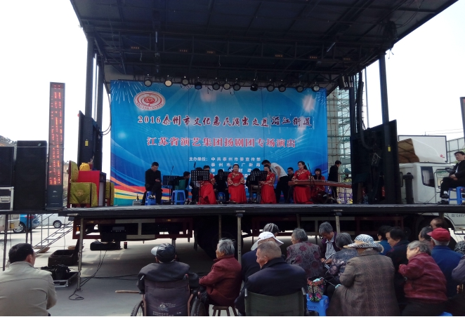 4月18日下午,沿江街道办事处邀请江苏省演艺集团扬剧团在滨江花苑广场举办文化惠民专场演出,为小区居民送上了一场精美的文化大餐。