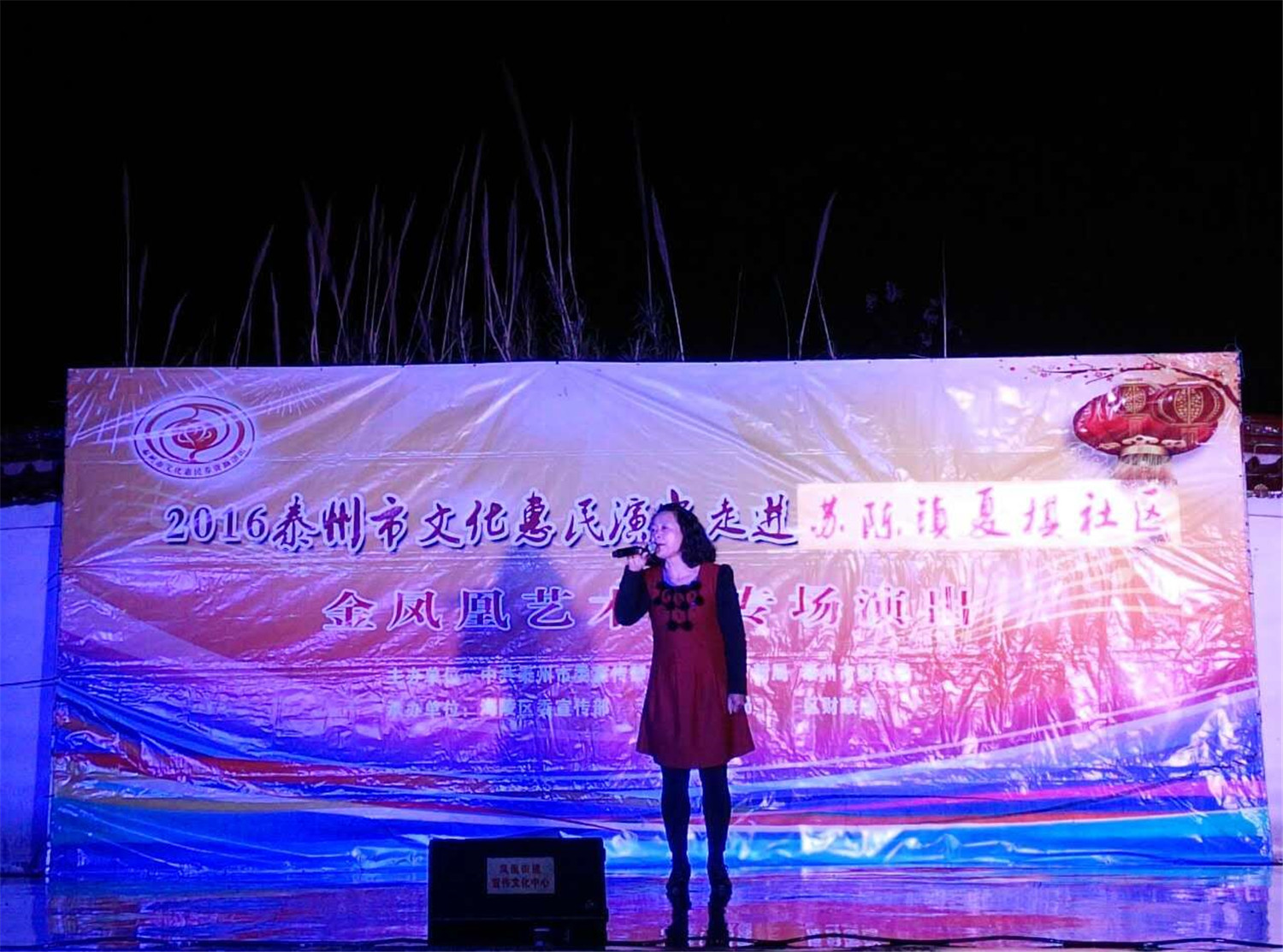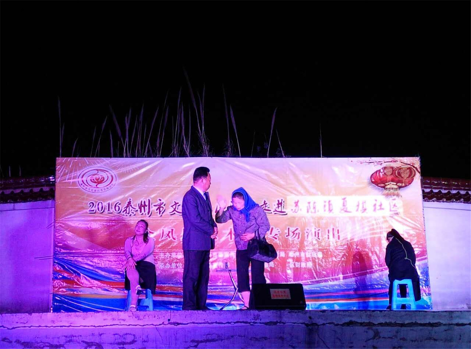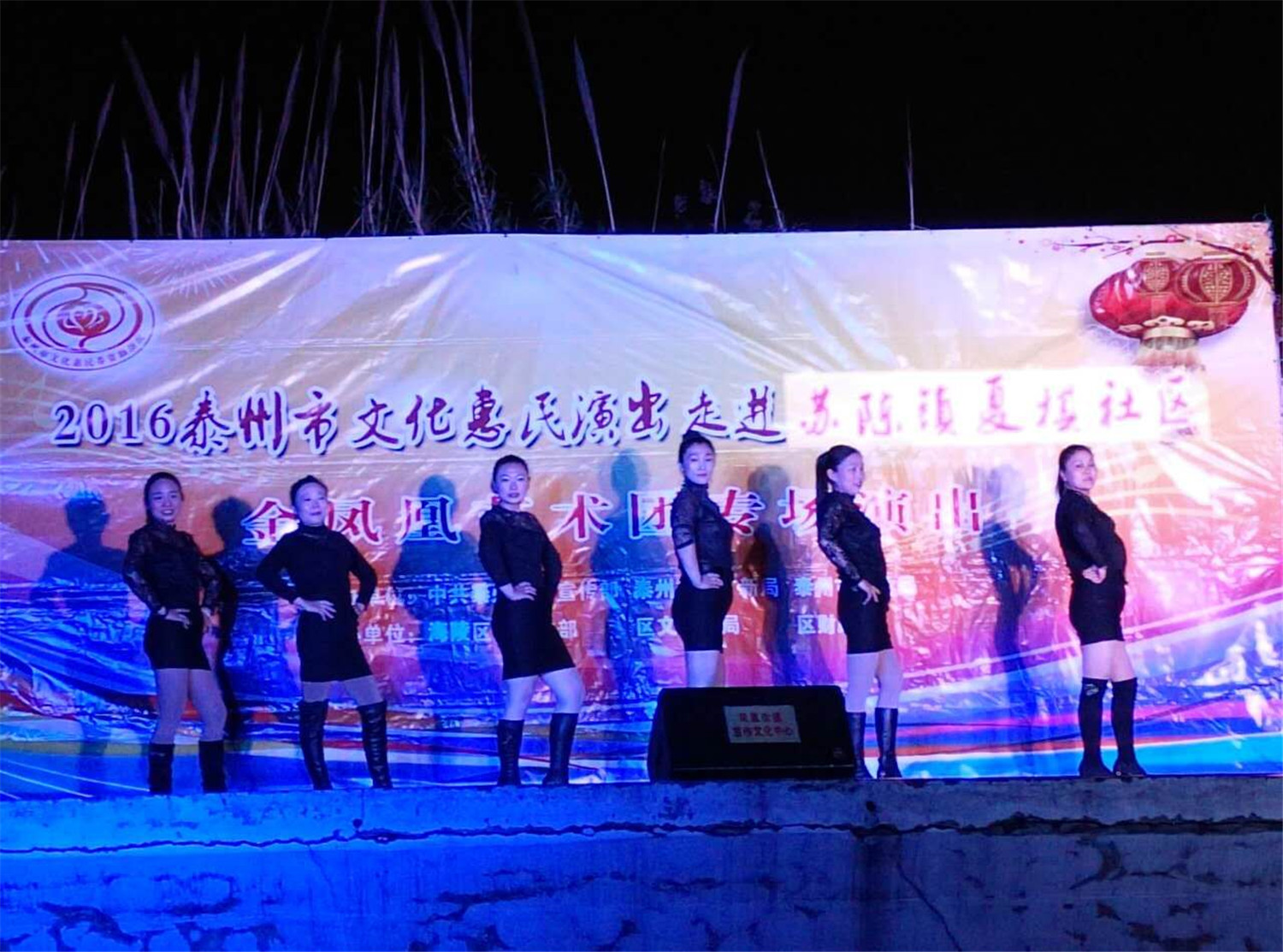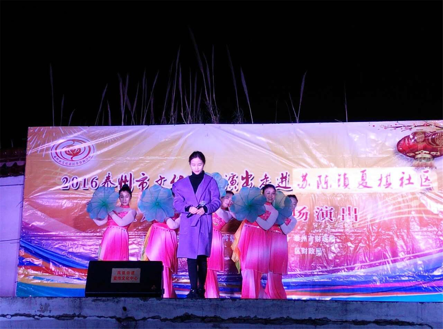 2016年4月17日晚7:30,泰州市高新区金凤凰艺术团文化惠民演出走进海陵区苏陈镇夏棋社区,为社区居民们上演了一台精彩纷呈的视听盛宴。