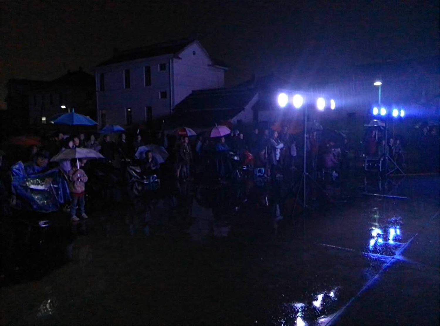 尽管天公不作美,下起了淅淅沥沥的小雨,但是全体观众的热情丝毫不减,并不断吸引了更多的父老乡亲们搬来凳子、撑起雨伞驻足观看。整场表演历时2个小时,有舞蹈《杨柳青》、歌伴舞《荷韵》、淮剧《卖香油》、戏曲《天要下雨娘要嫁》、越剧《洞房悄悄静幽幽》、小品《相亲相爱一家人》《傻子相亲》等十多个节目,整台节目内容充实、形式多样,现场掌声叫好声绵绵不绝。