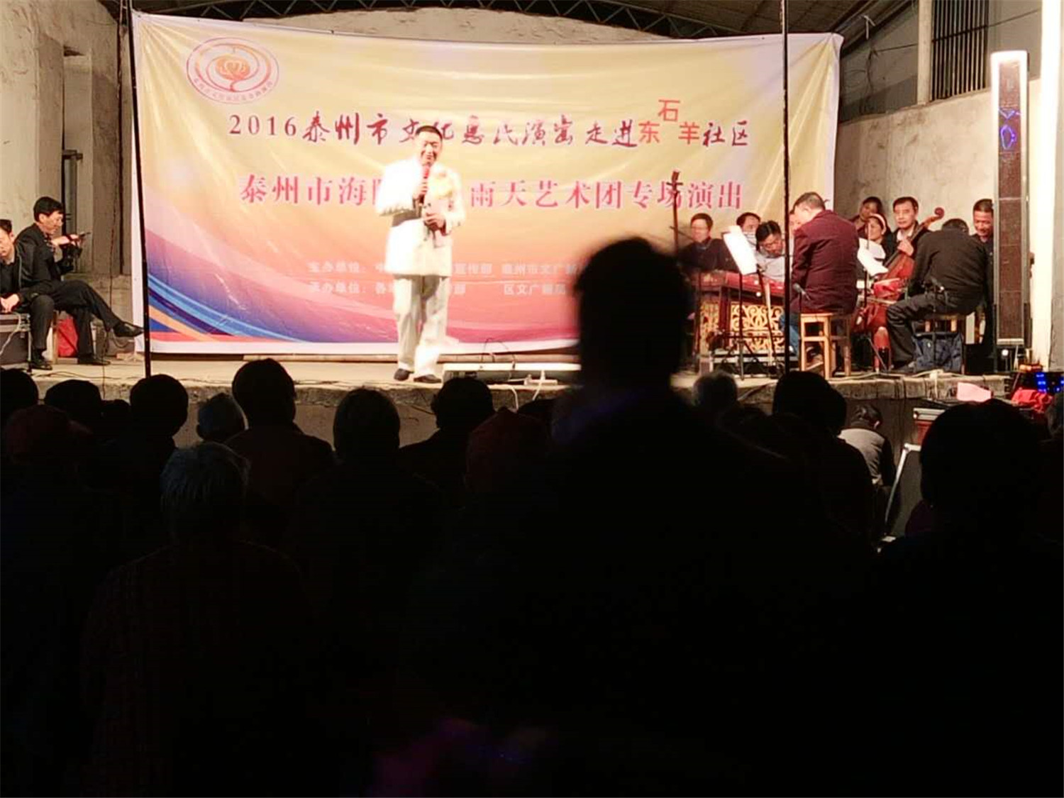 为进一步提高广大群众的思想道德素质,丰富居民的精神文化生活,4月15日晚,海陵区小雨天艺术团走进东石羊社区文艺惠民演出。