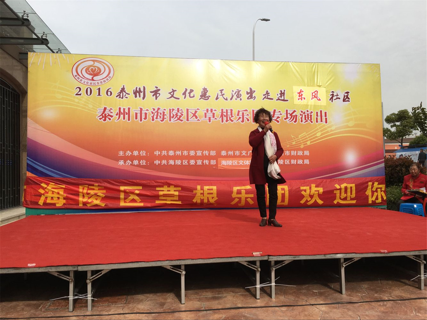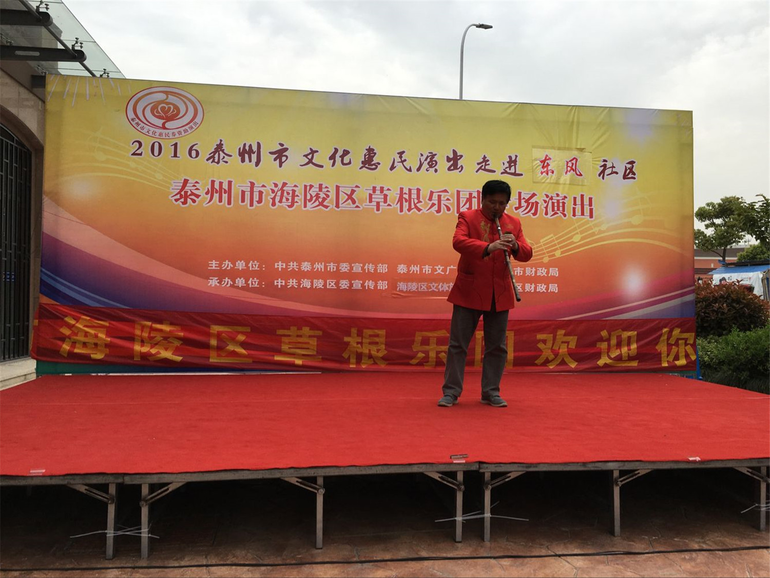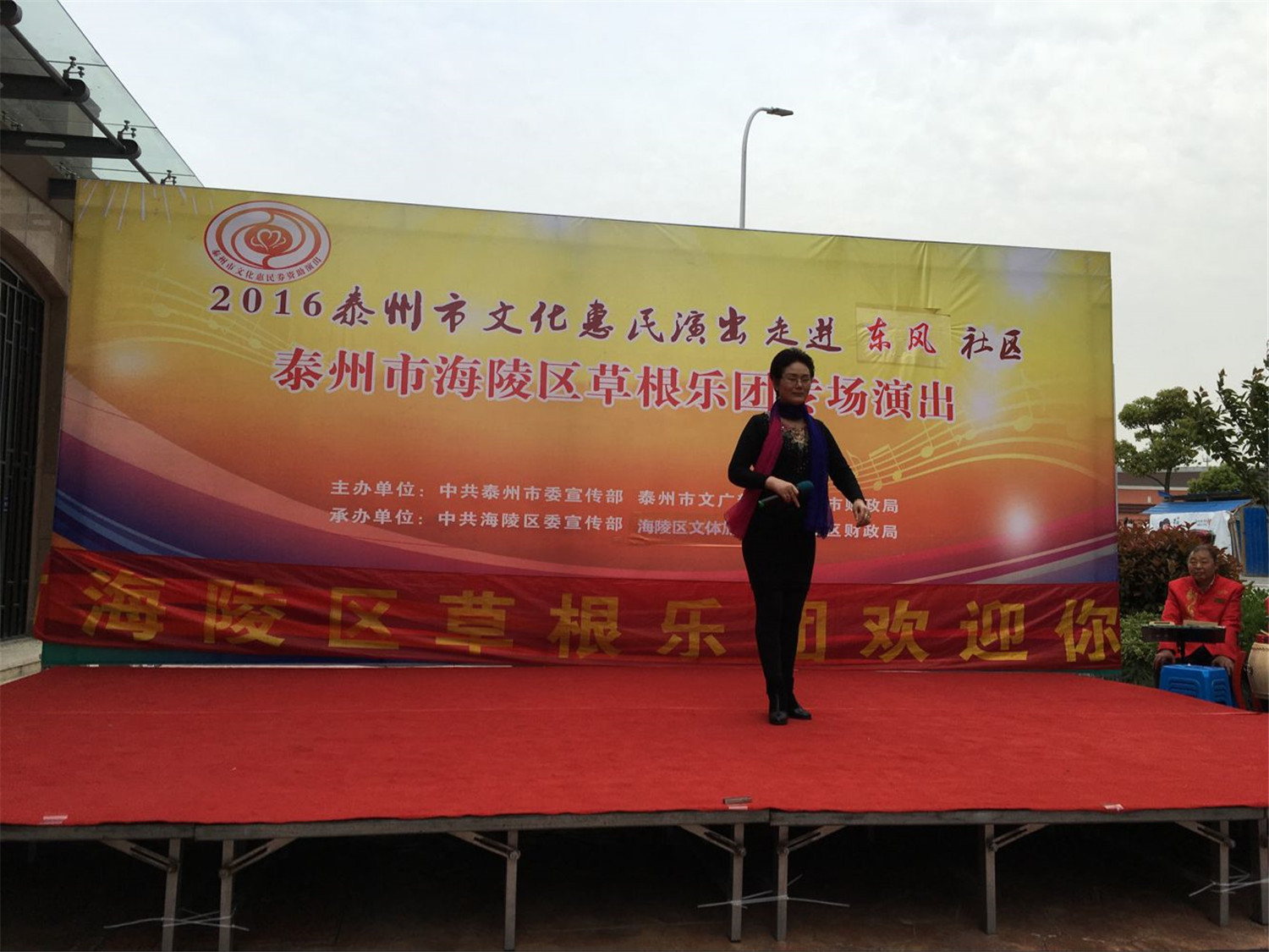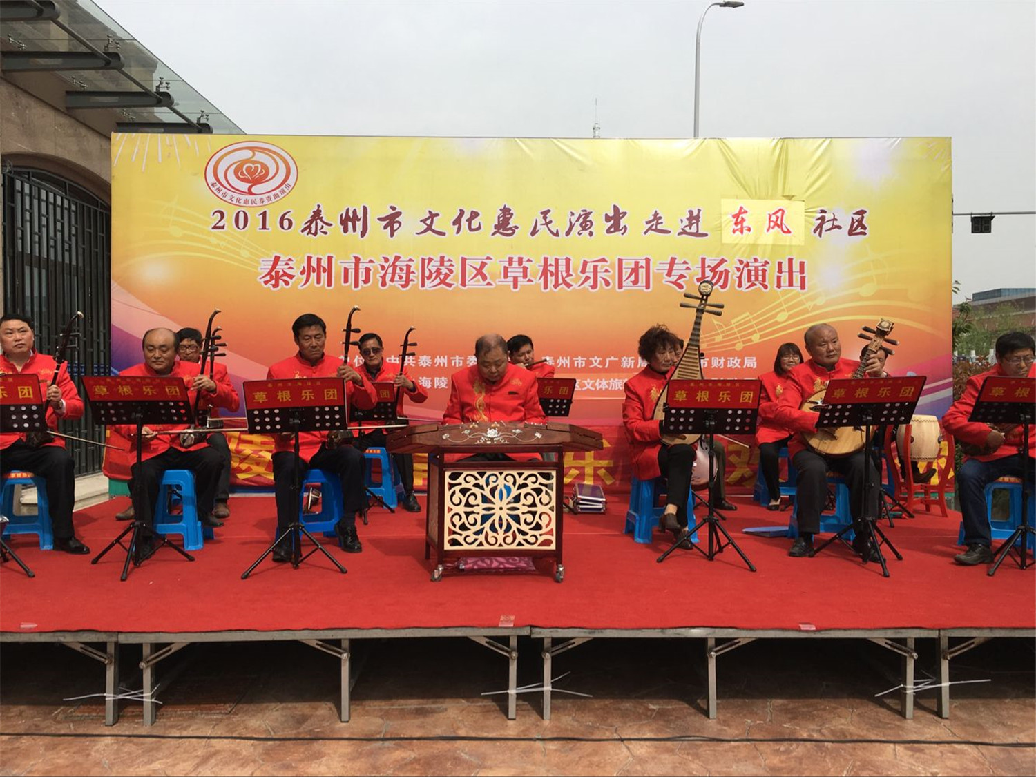 4月15日下午,东风社区在社区前广场开展卫生月宣传活动,邀请海陵区草根乐团来开展惠民演出。
