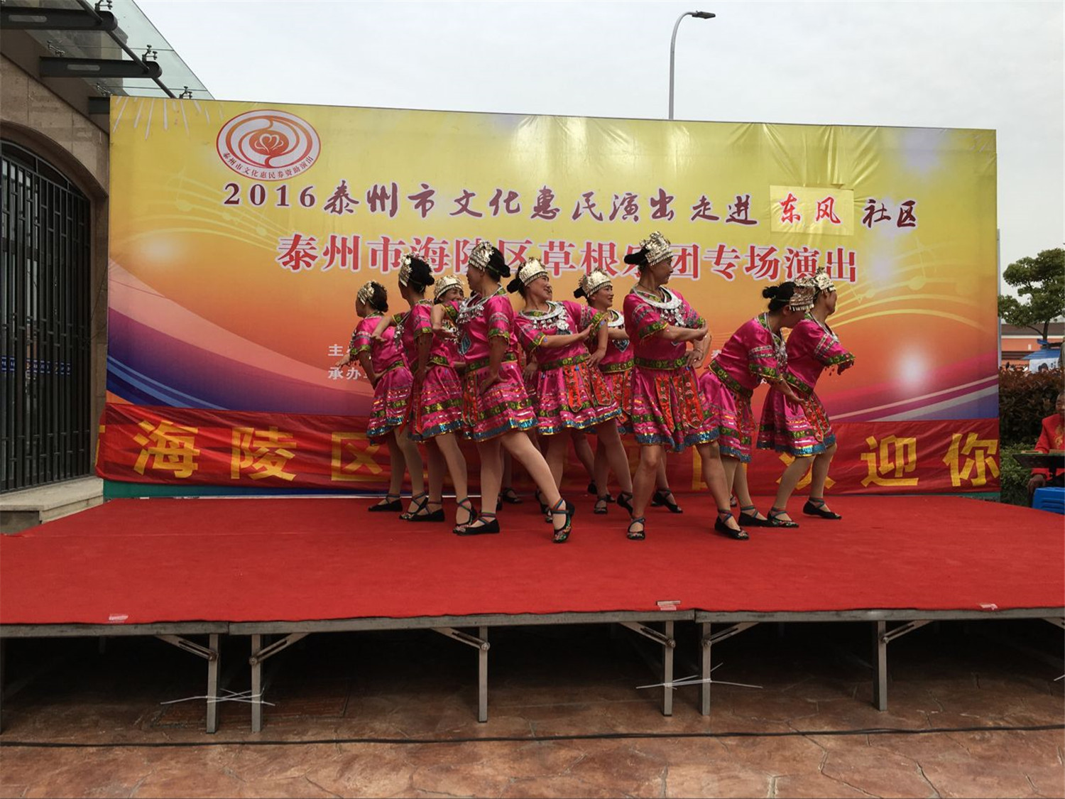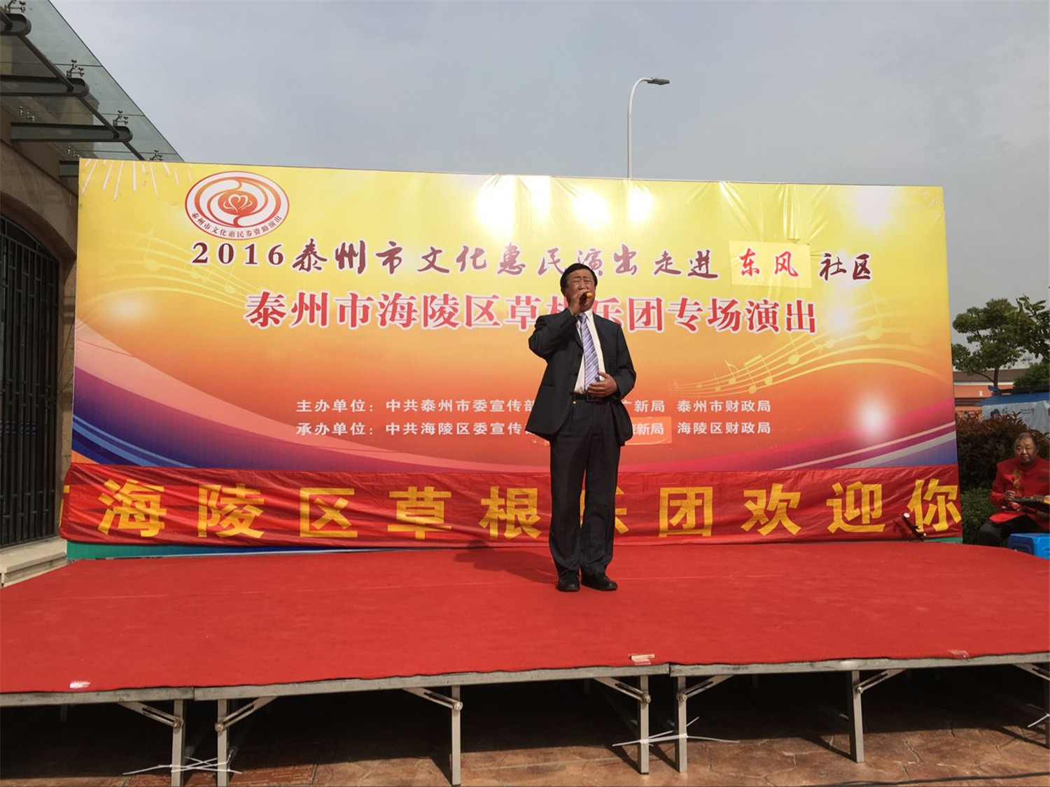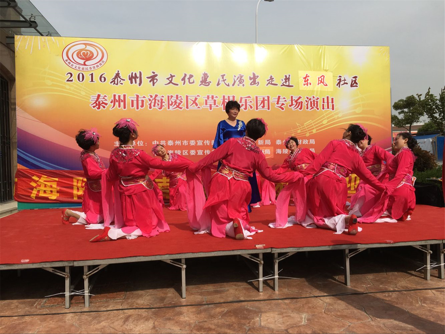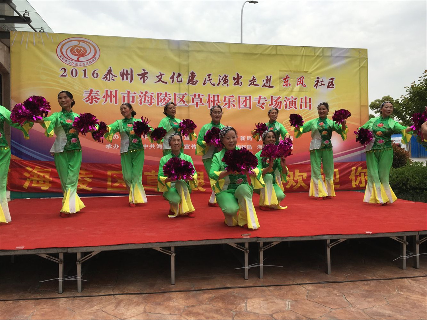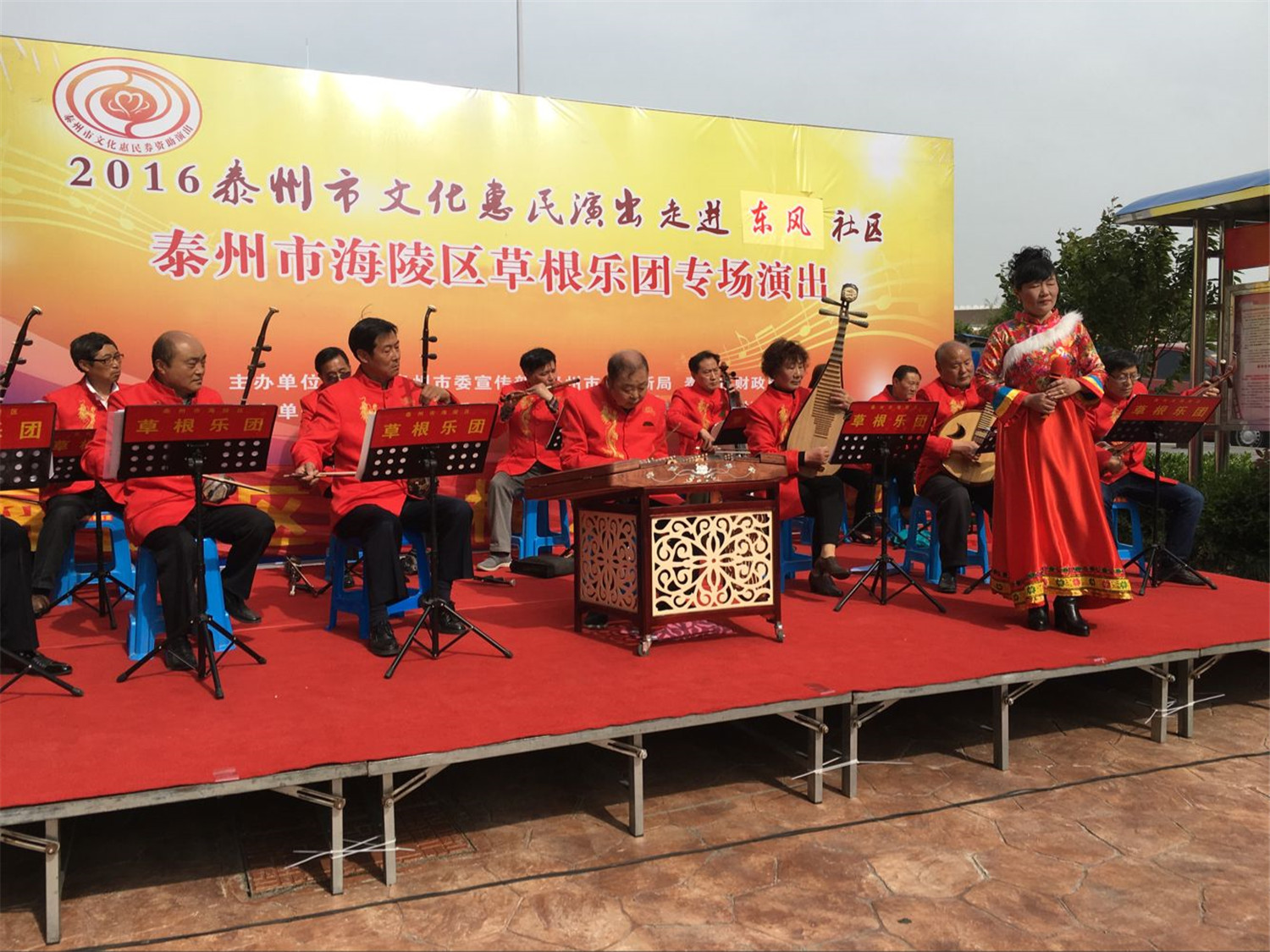 4月15日下午,东风社区在社区前广场开展卫生月宣传活动,邀请海陵区草根乐团来开展惠民演出。