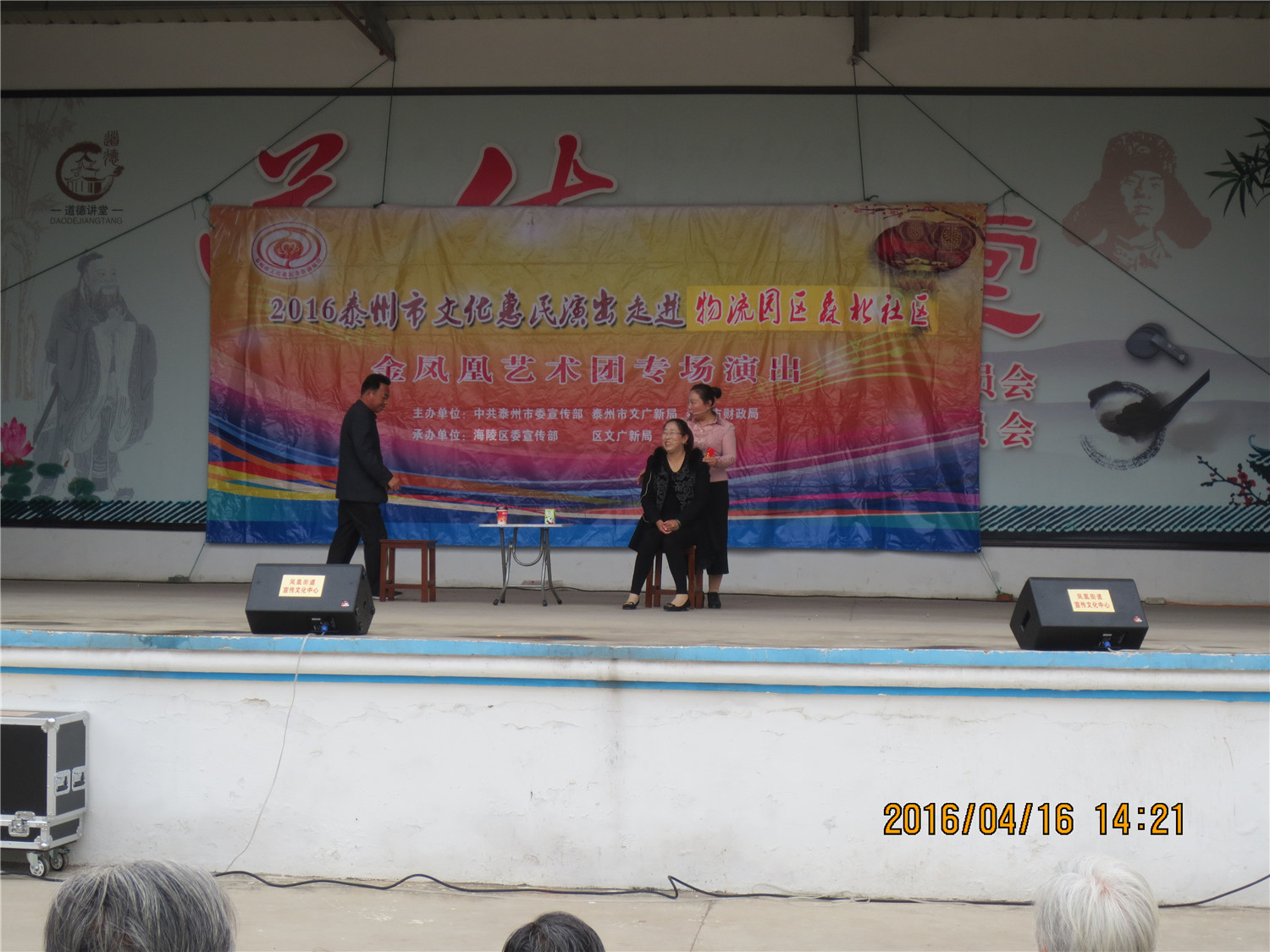为丰富辖区广大人民群众精神文化生活,把社区精神文明建设活动提高到一个新的水平,4月16日下午,城北物流园区森北社区邀请泰州市高新区金凤凰艺术团的演员们,在百姓大舞台广场开展文化惠民演出活动。