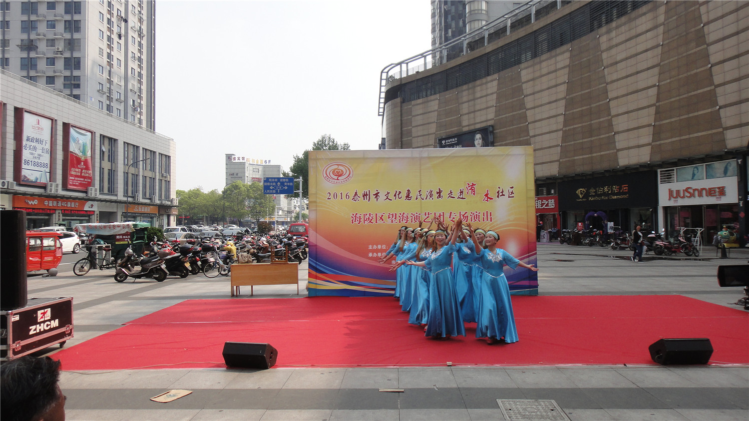 活动现场,海陵区望海艺术团专场表演的群舞《中国梦》、草原舞《浪漫草原》、歌曲《前门情思大碗茶》、葫芦丝齐奏《龙船调》等十九个精彩演出把现场气氛不断推向高潮,特别是《美德善行在洧水》快板书展现和歌颂了和谐社区的美好生活,传递正能量,发挥社区先进人员的引领作用。赢得了在场社区群众的阵阵掌声,人们纷纷拿出手机拍照、摄像,并深深感叹道:如今社区的精神文化生活档次提高了,在家门口就能看到这样精彩的文艺演出。