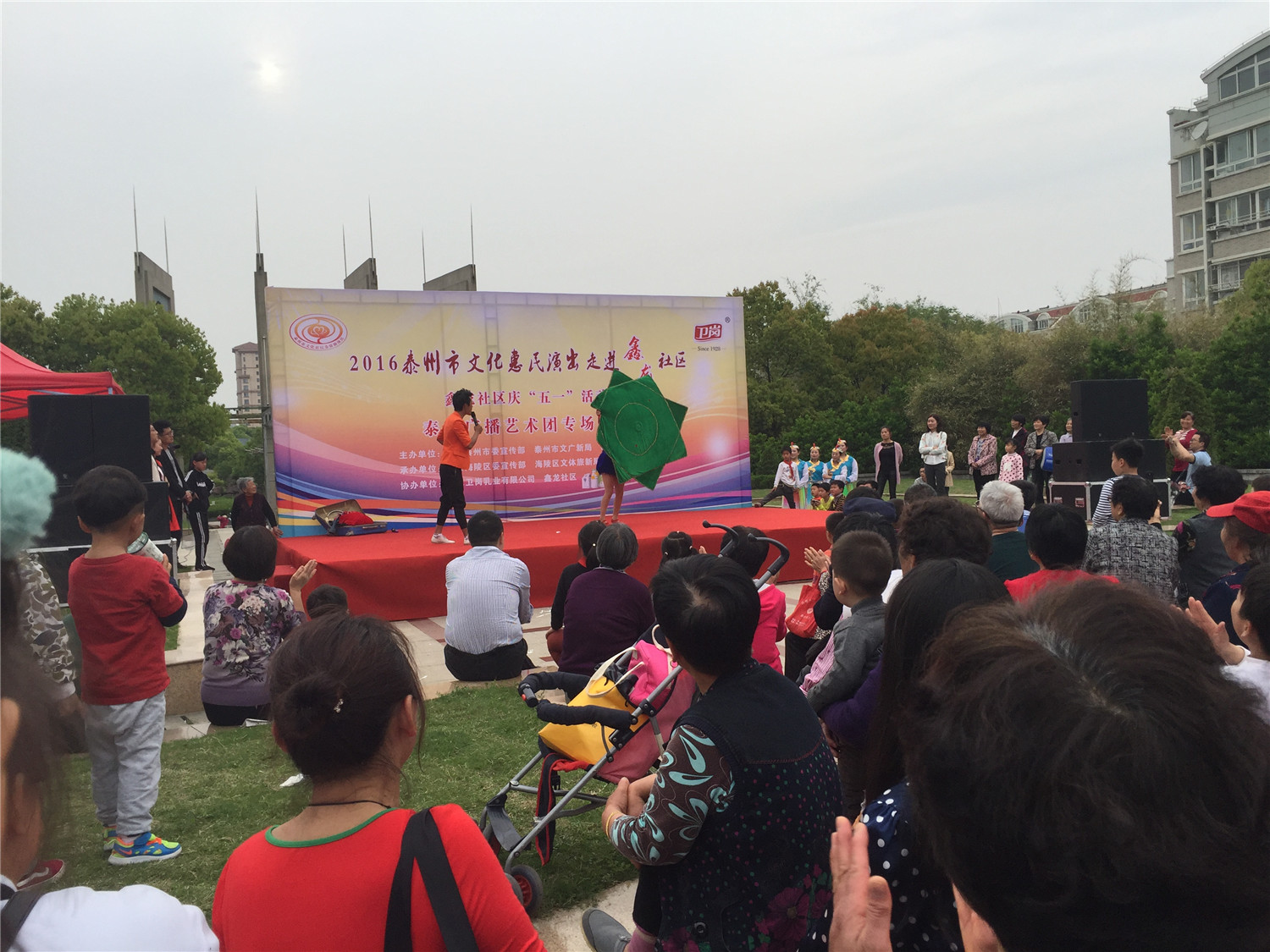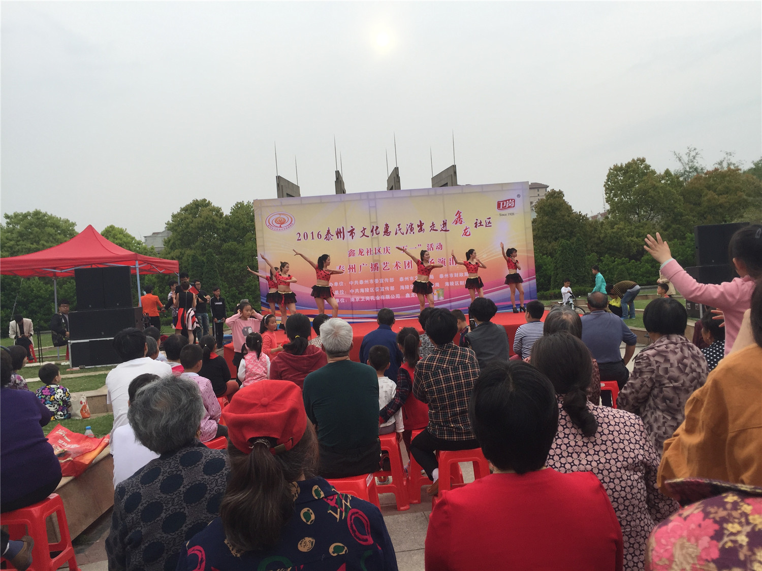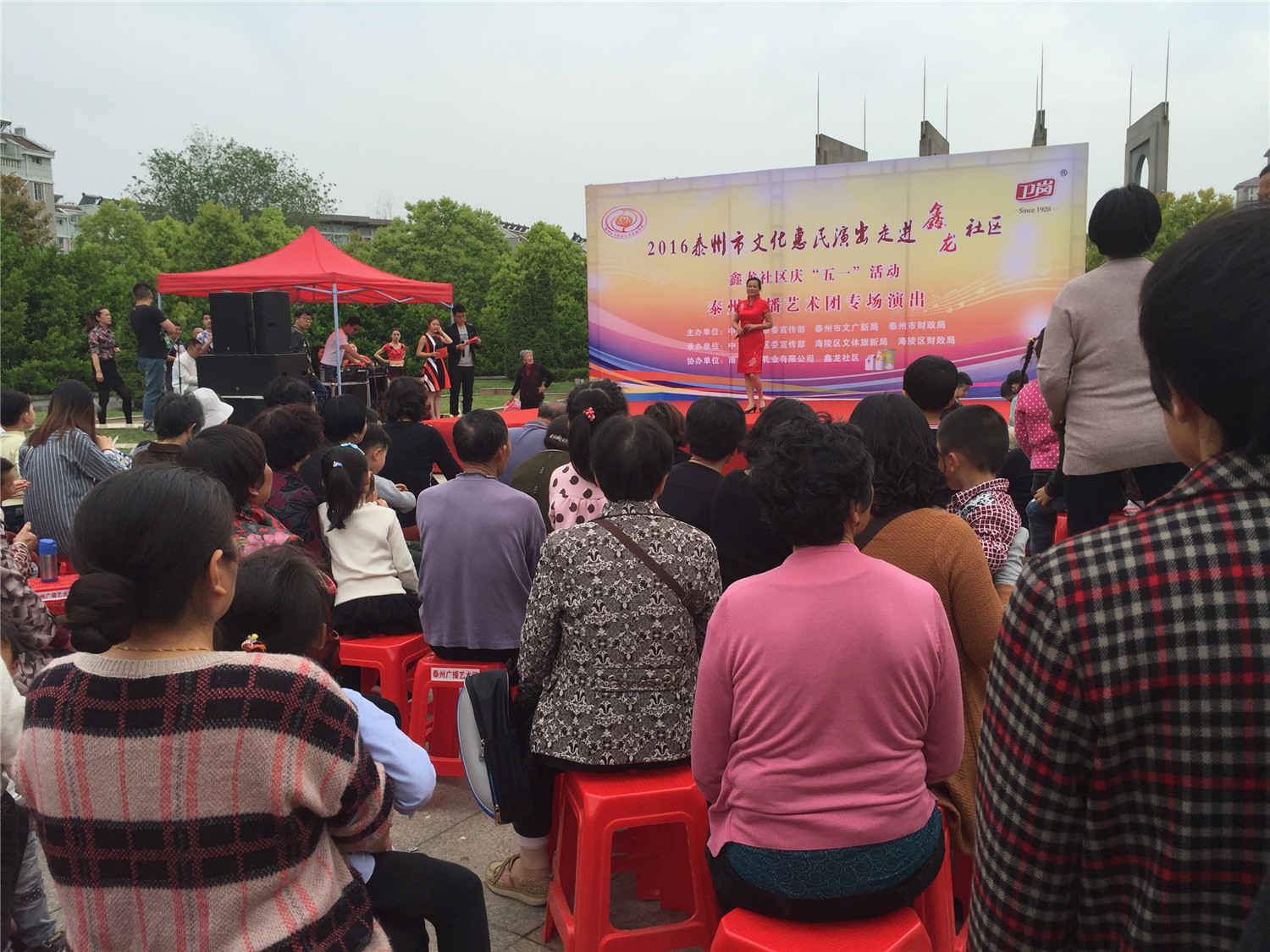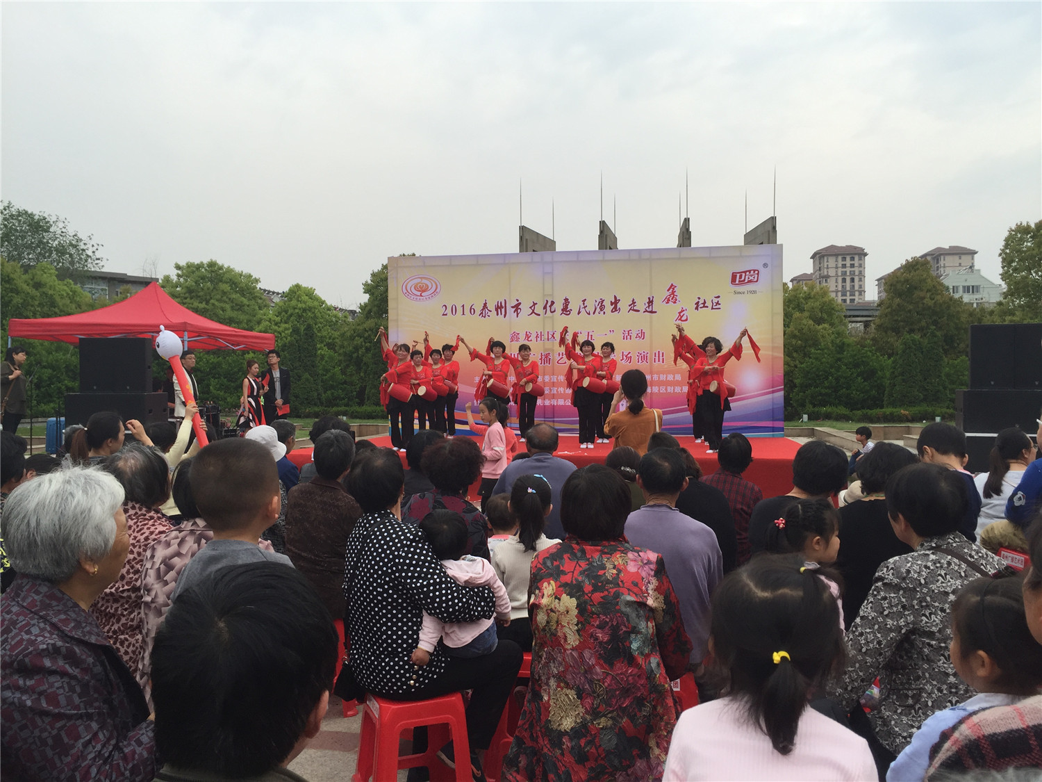 为迎接一年一度的国际五一劳动节,4月22日,鑫龙社区邀请泰州广播艺术团在社区中心广场表演文艺节目。