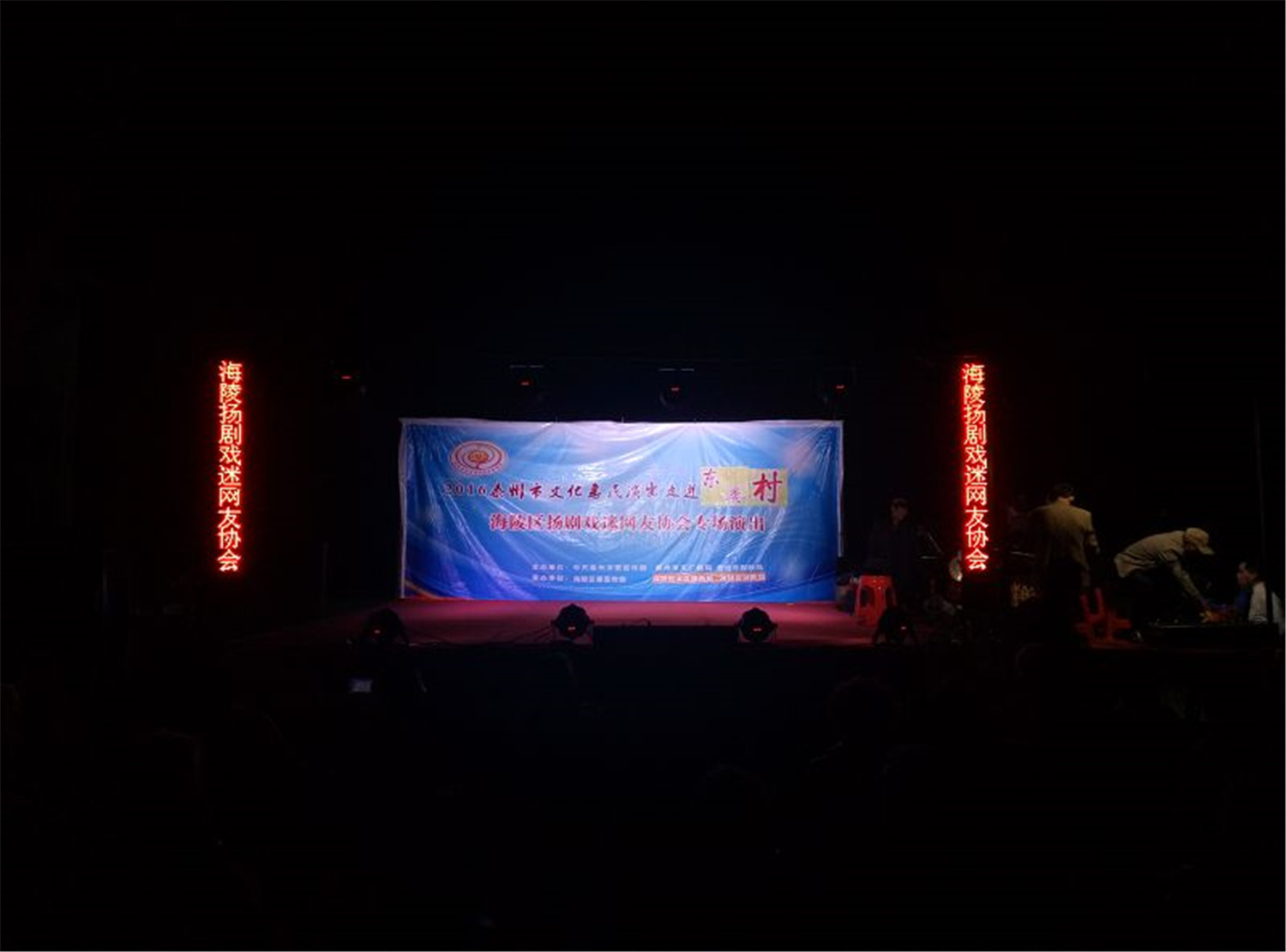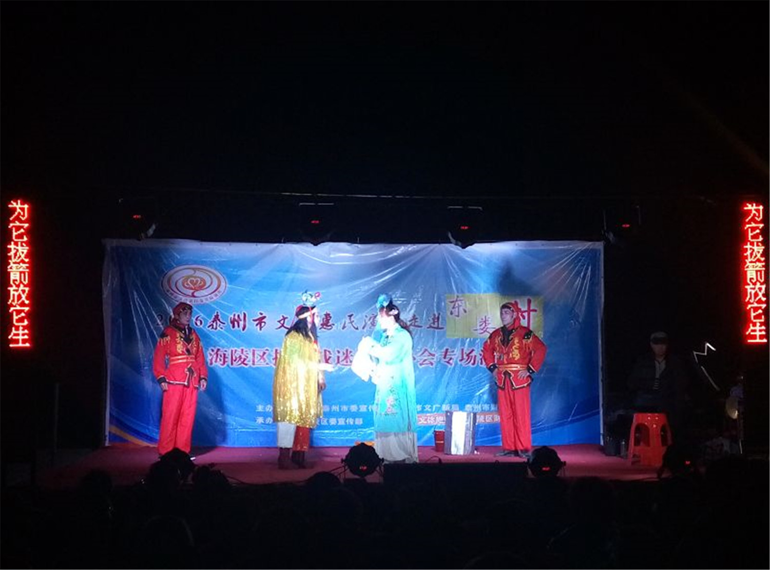 演出在扬剧《白兔记》中拉开了序幕,接着演出团队开始了一连串的扬剧表演,包括了《探寒窑》、《小媳妇回娘家》、《安寿宝卖身》、《僧尼下山》、《梁祝》,节目内容精彩纷呈,最后在村民群众的热烈掌声中活动落下帷幕。大家纷纷表示,把文化送到乡村,让农民朋友们享受到更多更先进的文化实惠,体现着党和政府对农业、农村、农民工作的关注、关心和关怀,希望村里面今后多开展这样的活动,他们都愿意看。