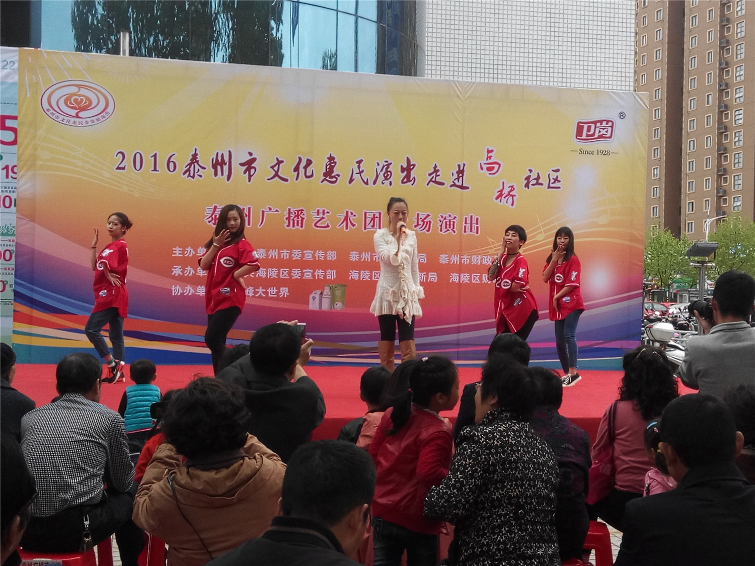 4月24日下午,高桥社区在文峰大世界西侧广场举行文化惠民演出,邀请泰州广播艺术团为大家带来丰富多彩的文化大餐。活动中大家用动听的歌声和精彩的舞蹈,歌颂甜蜜的生活,憧憬美好的未来!