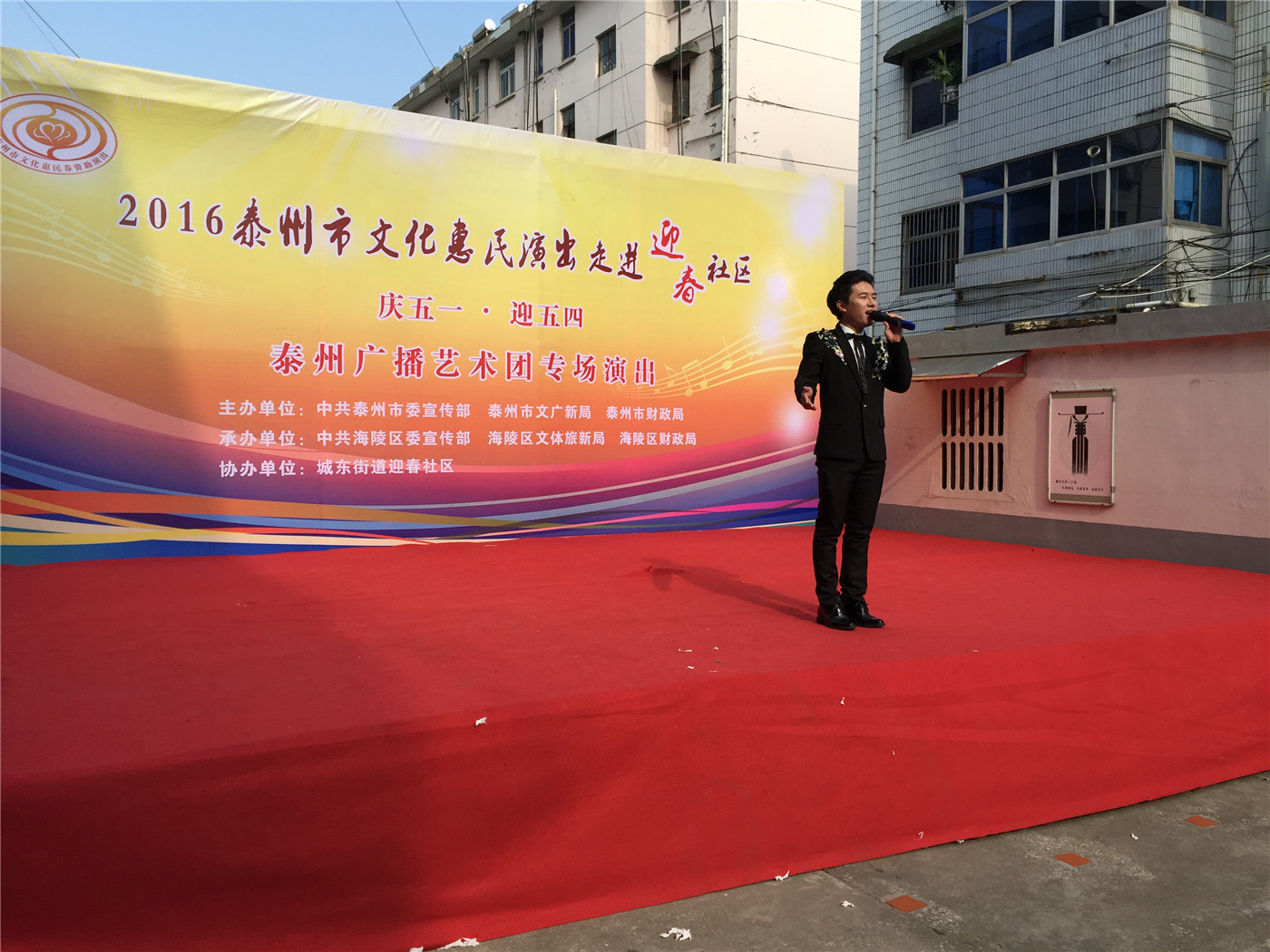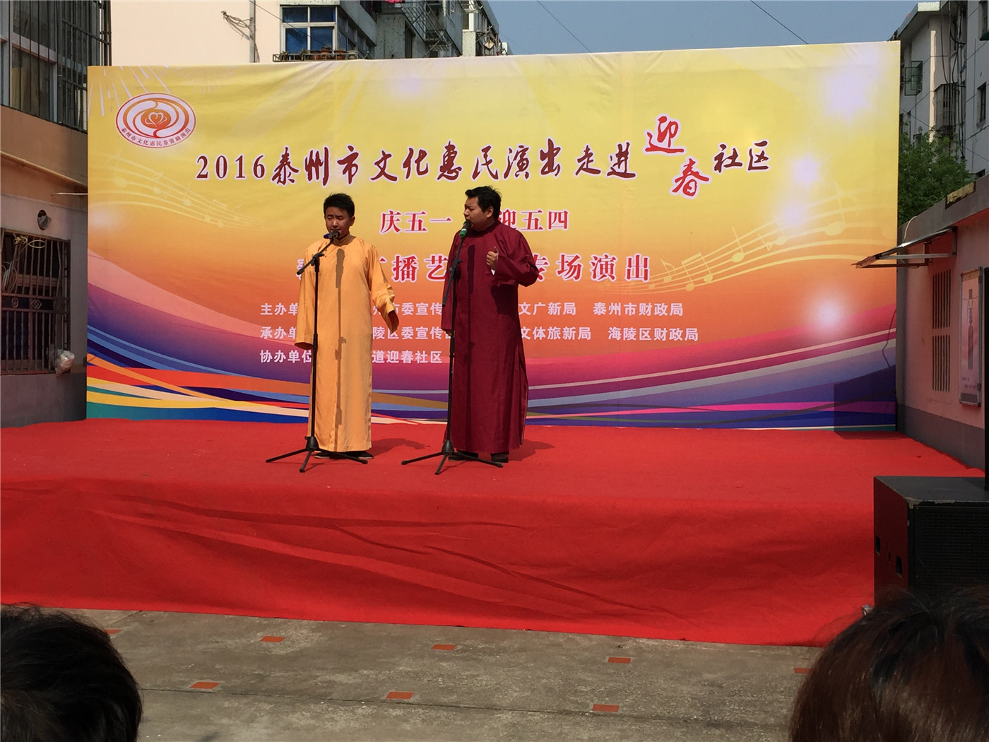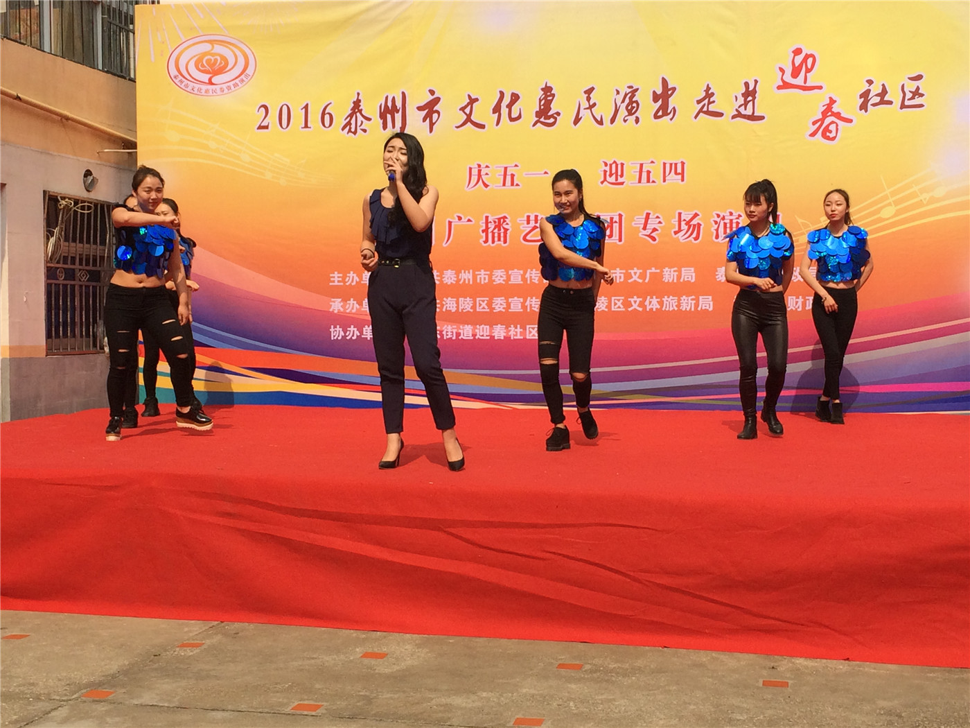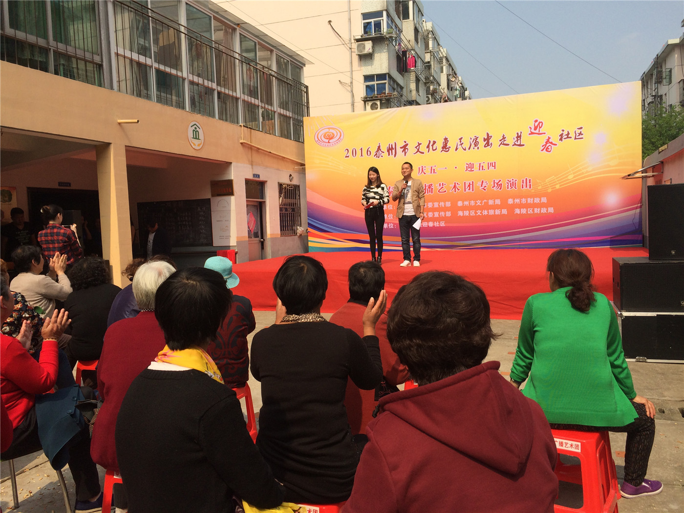 4月28日下午,迎春社区联合泰州广播艺术团在社区活动中心内开展“庆五一·迎五四”文化惠民演出,共有200多人参加活动。