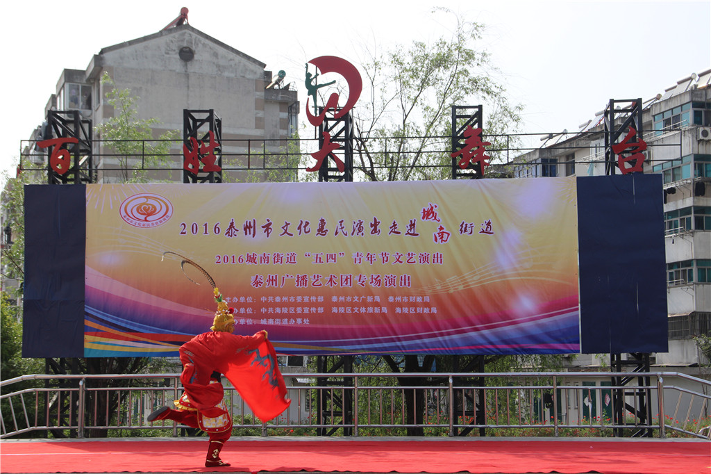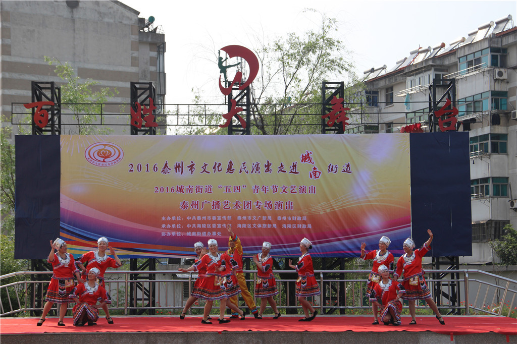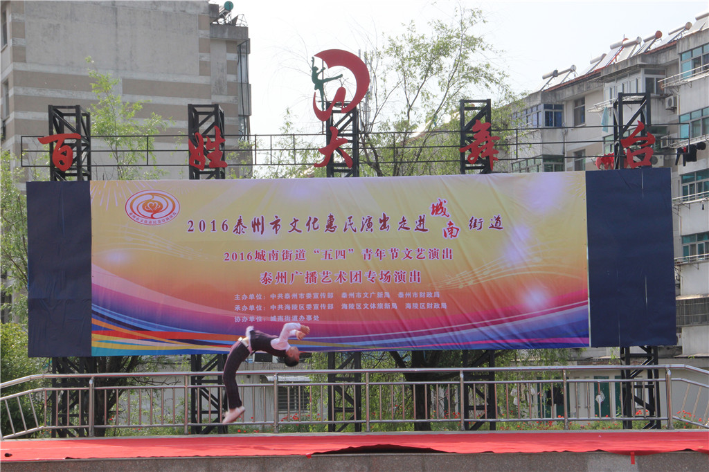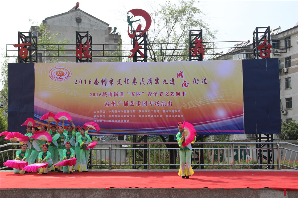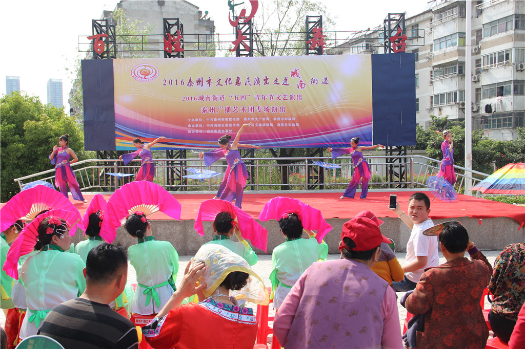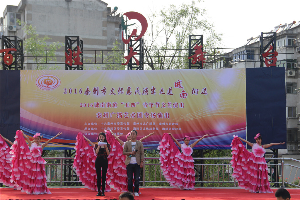 值此“五四”青年节来临之际,为弘扬"五四"精神,展现城南街道广大青年健康向上的精神风貌,增强青年们的凝聚力和向心力,昨天下午,城南街道办事处和泰州广播艺术团在城南街道百姓大舞台联合举办了一场“五四”青年节文艺演出文化惠民演出活动。