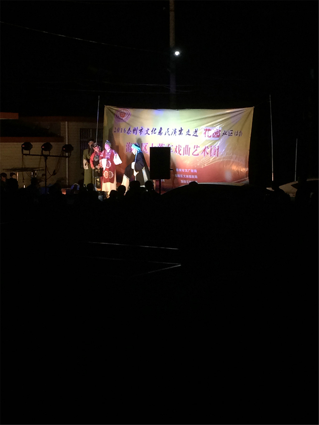 5月6日晚,泰州文化惠民演出走进花园村,海陵区大蓬车戏曲艺术团为村民献上一场戏剧大餐。