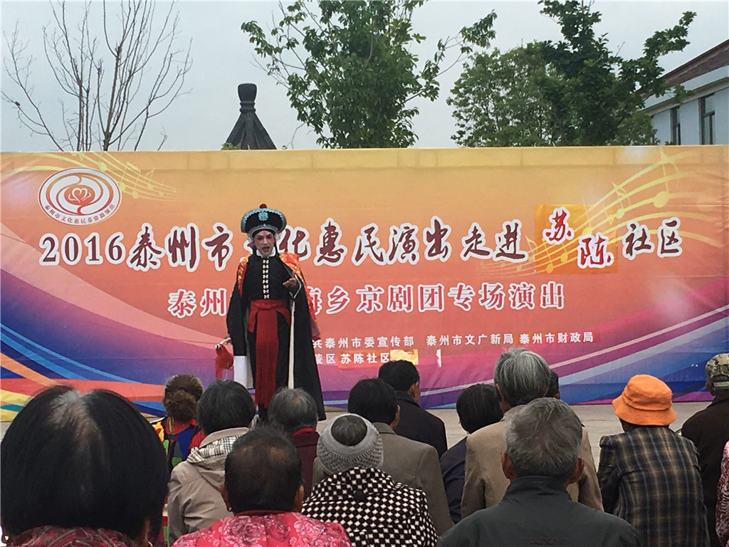 5月10日下午,泰州文化惠民演出走进苏陈镇苏陈社区,海陵区梅乡京剧团在苏陈影剧院广场为村民献上一场戏剧大餐。