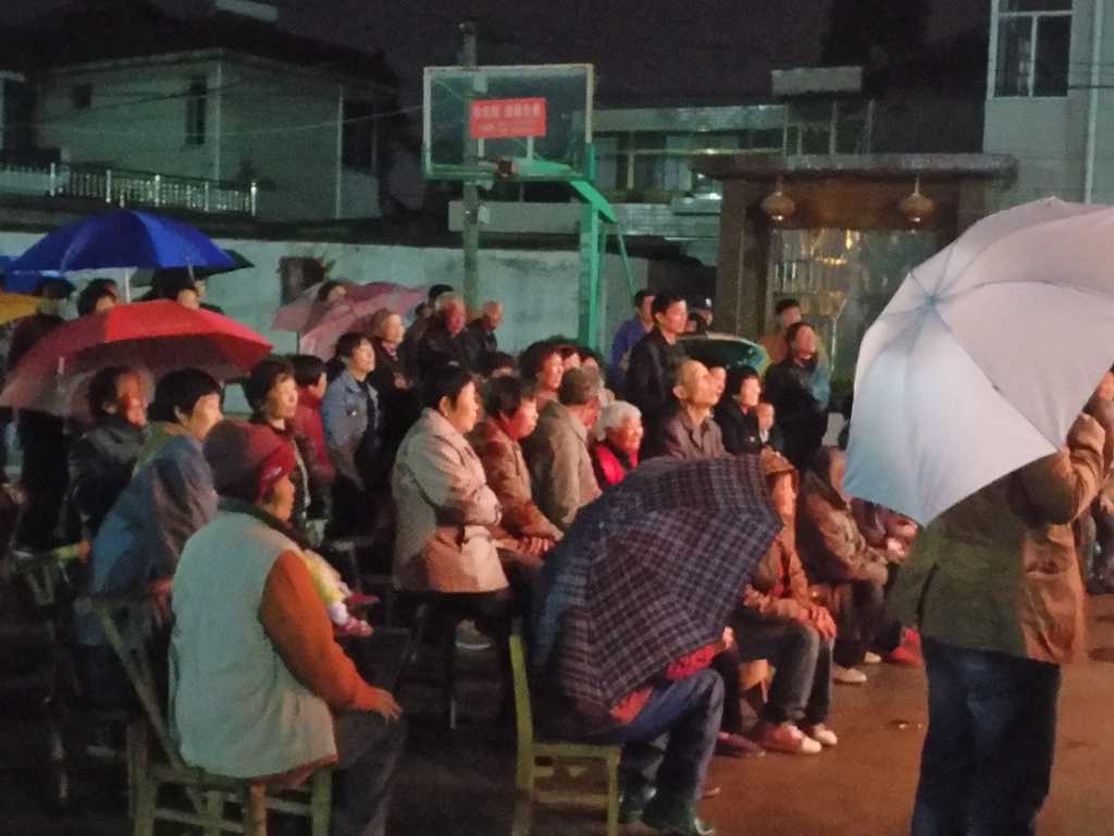 戏曲名称为《真假新郎》,整场演出2个多小时,虽然天空下着绵绵细雨,居民自带雨具观看,热情很高,演出效果理想,村民反映良好。