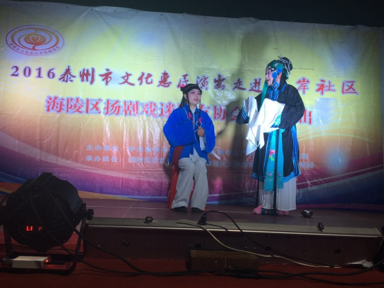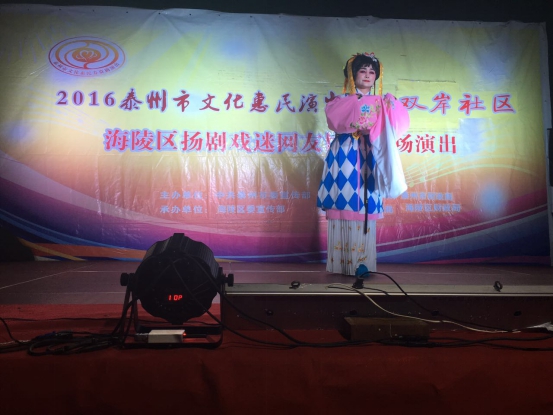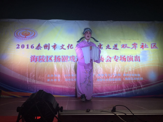 2016年5月11日晚7点,扬剧戏迷网友协会走进苏陈镇双岸社区,为广大的居民朋友们带来了精彩的扬剧表演。扬剧《看灯、挑女婿》、《向朝阳》、《安寿宝卖身》、《梁祝》等经典选段让社区群众不禁拍手称好。形式多样、内容丰富的节目吸引了广大的居民群众前来观看。演出在观众们热烈的掌声中画上了圆满的句号。大家都表示看的意犹未尽,期待下一次更精彩的表演并希望这样的文化惠民演出能经常深入到基层来,丰富老百姓的业余文化生活。