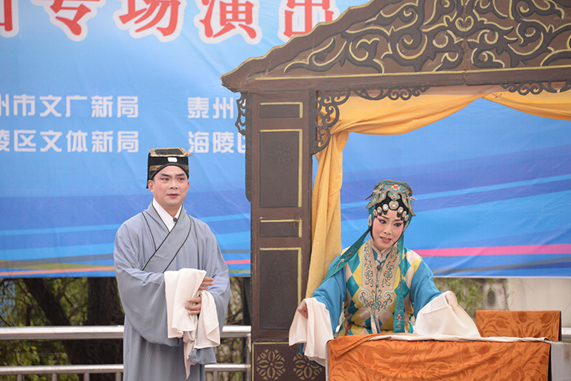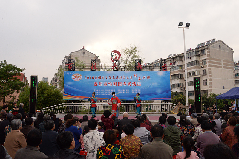 泰州市淮剧团文化惠民演出5月18日下午走进海陵区城南街道办事处莲花四区百姓大舞台,给广大的居民带来了一台淮剧折子戏专场演出,两个小时的演出,观众对演员专业精堪的表演赞不绝口、叫好声、掌声不断,居民姜大爷说:“以前我都是去剧院看你们的演出,没有想到政府出台了这么好的惠民演出政策,能让我们在家门口就能看你们精彩表演,欢迎你们常来为我们演出!”