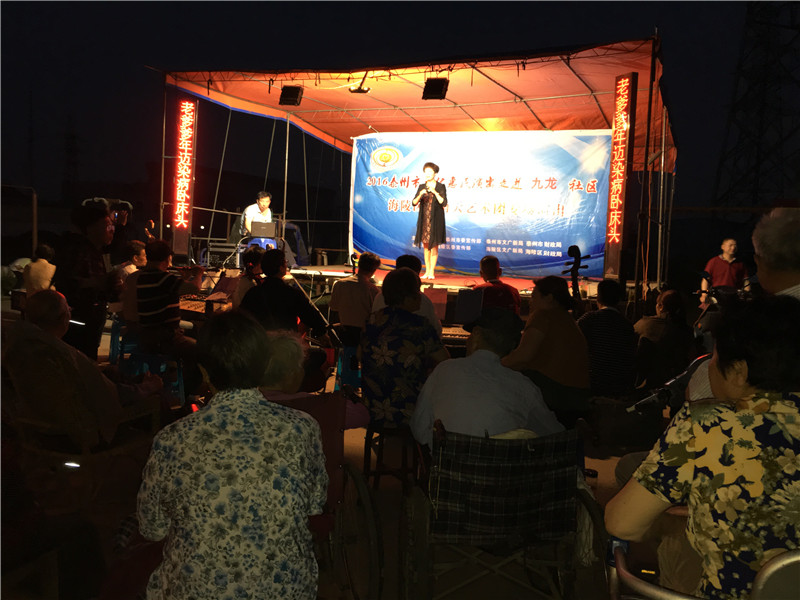2016年6月12日晚,九龙社区健身广场上人声鼎沸、座无虚席,小雨天艺术团为社区居民送来了一场丰盛的文化大餐。