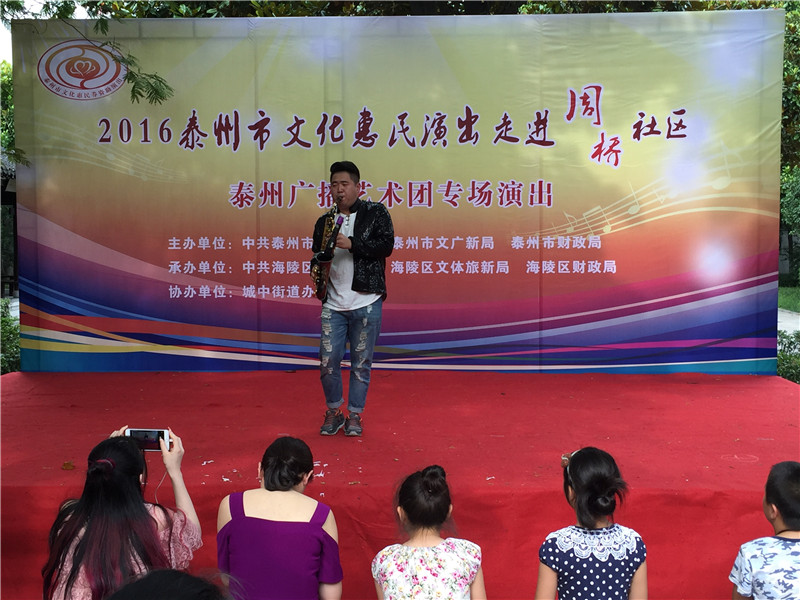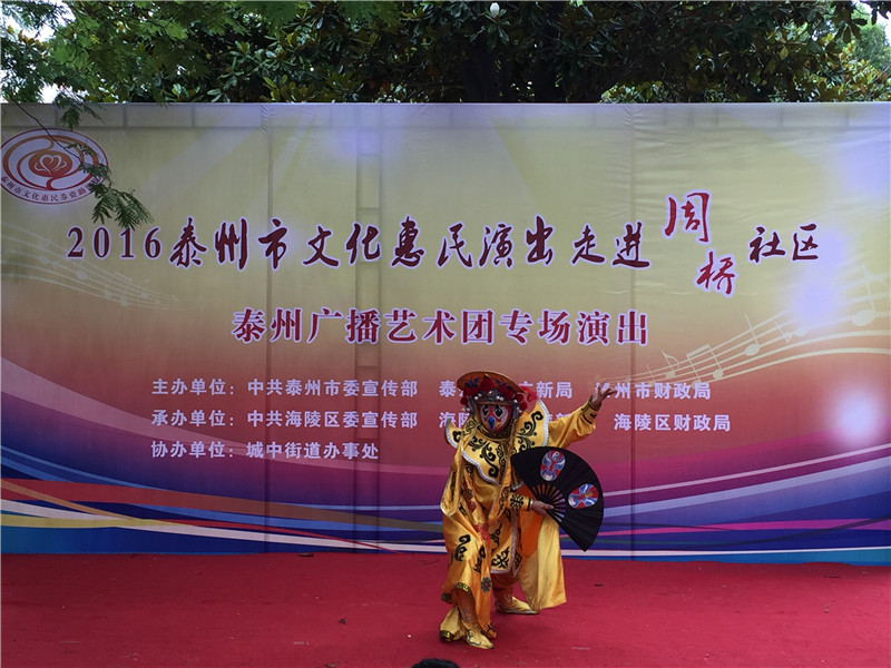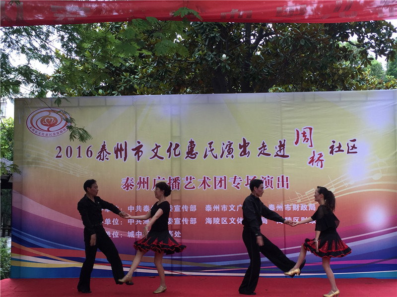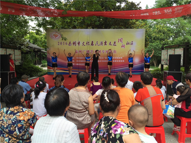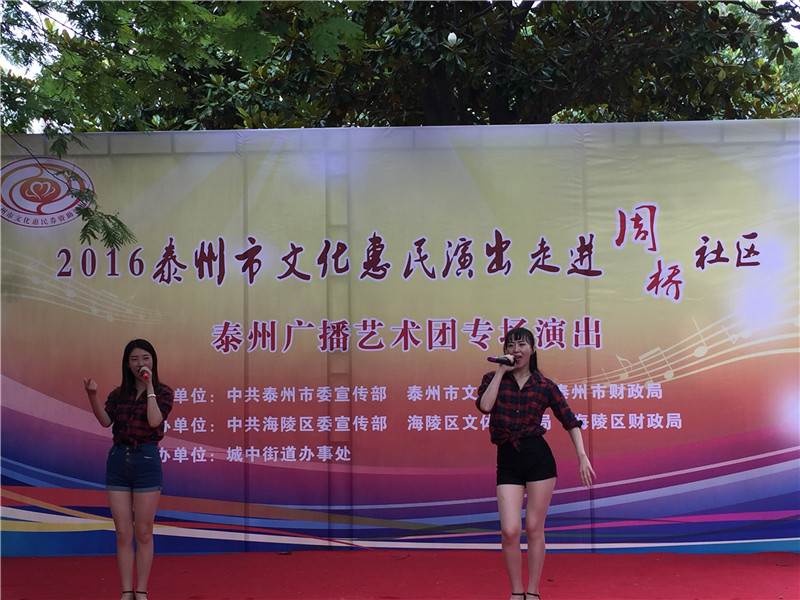 为庆祝中国共产党建党95周年,6月30日下午,周桥社区邀请了泰州广播艺术团来到周桥游园,给社区居民带来一场文化盛宴。