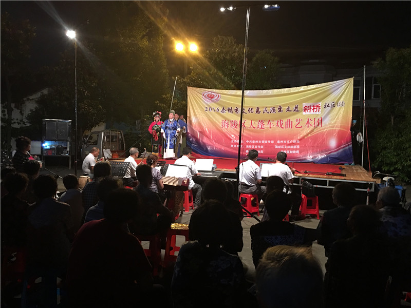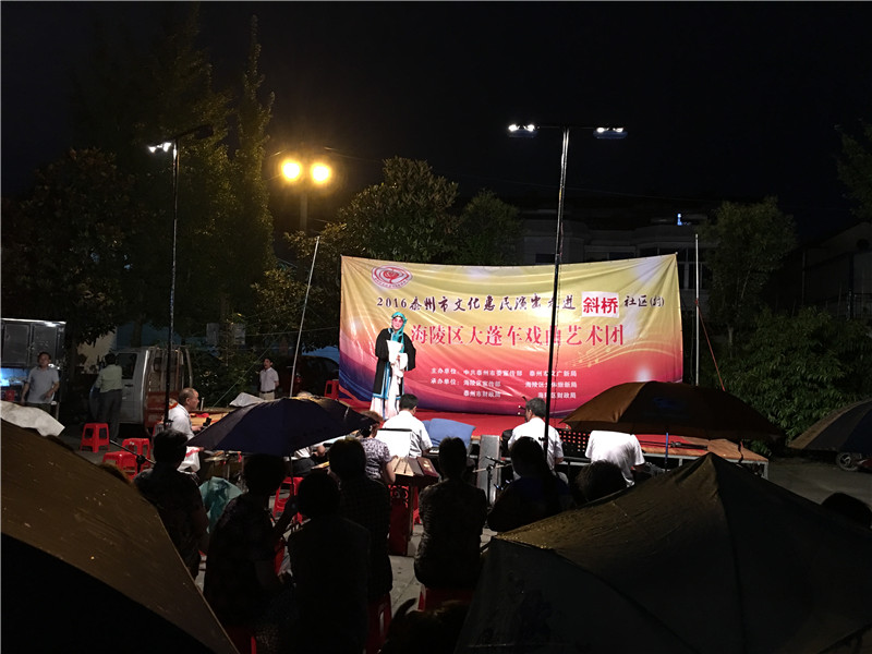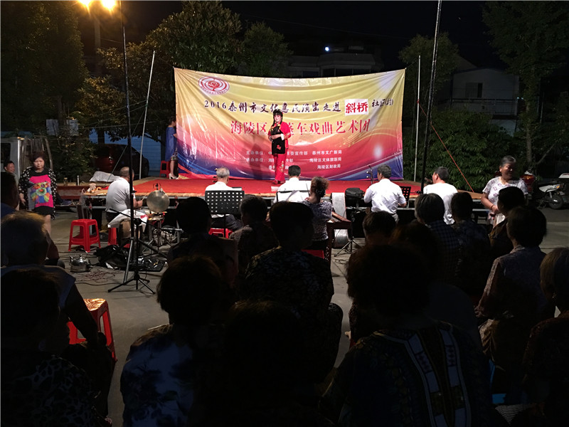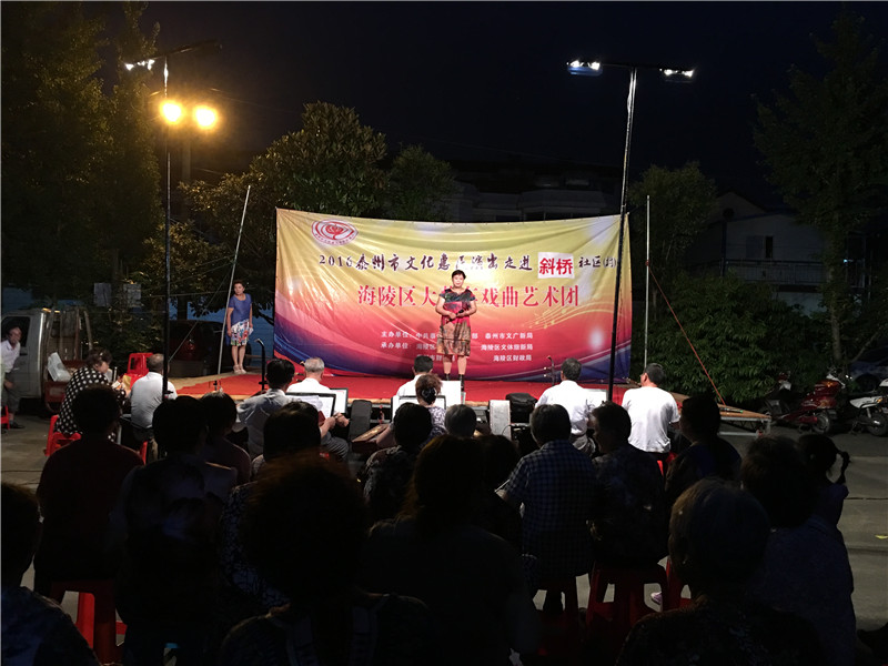 7月15日晚,海陵区大篷车戏曲艺术团走进斜桥社区,为广大喜欢戏曲的居民朋友送上一场文化演出盛宴。