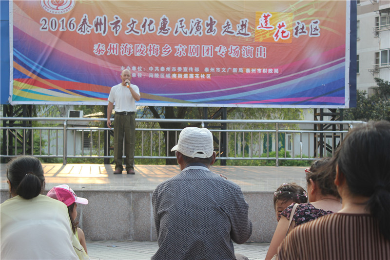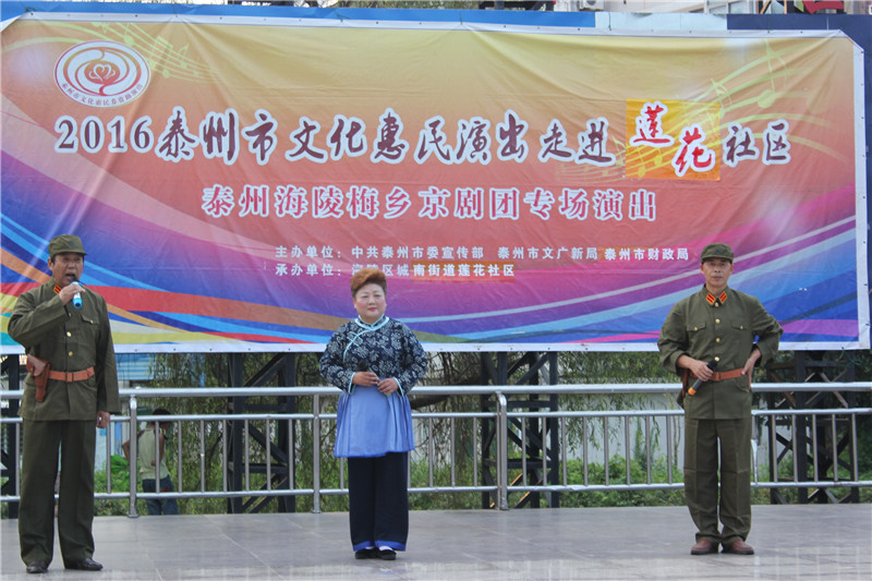 为丰富广大居民群众的业余文化生活,莲花社区邀请海陵梅乡京剧团走进社区开展文化惠民演出,为社区的戏曲爱好者献上了一场文化盛宴,让他们感受到戏曲艺术的魅力。