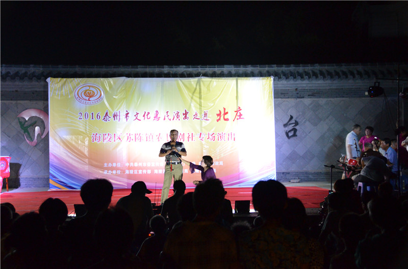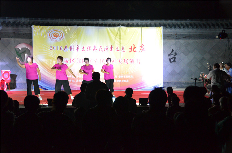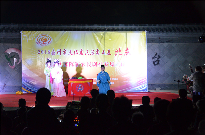 为丰富居民业余文化生活,7月29日晚,苏陈镇北庄村邀请泰州海陵区苏陈镇农民剧社为居民群众献上了一场精彩的文艺演出。晚上七点演出准时开始,广场上坐满了前来观看的居民。演出在舞蹈《恭喜发财》中拉开了序幕,此次文艺汇演有舞蹈、葫芦丝、表演唱、小品等节目,优美的乐声,动感的舞蹈以精彩的表演,不时赢来社区居民们的阵阵掌声。