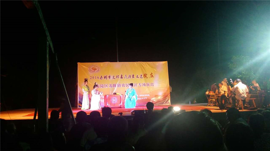 8月16日晚,院庄社区邀请泰州海陵区苏陈镇农民剧社来我村开展了惠民演出活动。虽然天气闷热,但挡不住居民们观看演出的热情,演出内容包含表演唱、扬剧、淮剧等,节目丰富多彩,吸引了不少村民前来观看,大家在一阵阵热烈的掌声与欢笑声中度过了一个愉快的夜晚。