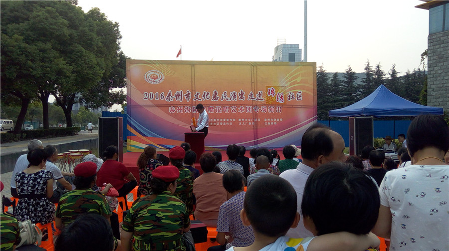 为丰富广大居民群众的业余文化生活,锦绣社区9月12日邀请海陵名嘴说唱艺术团走进社区开展文化惠民演出,为社区的说唱爱好者献上了一场文化盛宴,让他们感受到歌曲艺术的魅力。