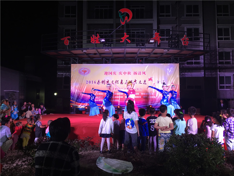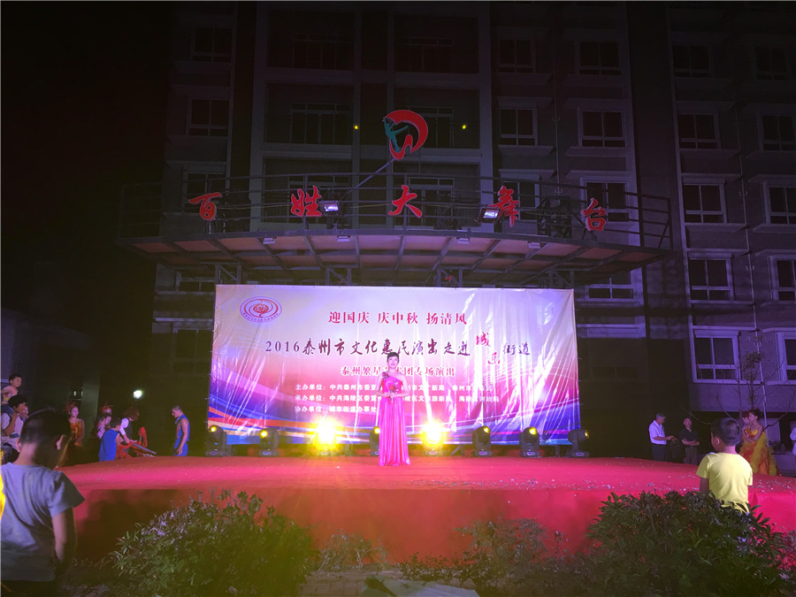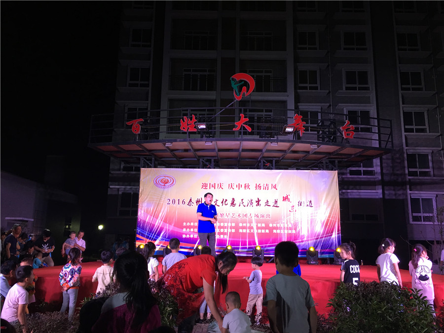 9月14晚,泰州繁星艺术团文化惠民演出走进城东街道,在宫涵社区百姓大舞台开展“迎国庆 庆中秋 扬清风”专场演出活动。