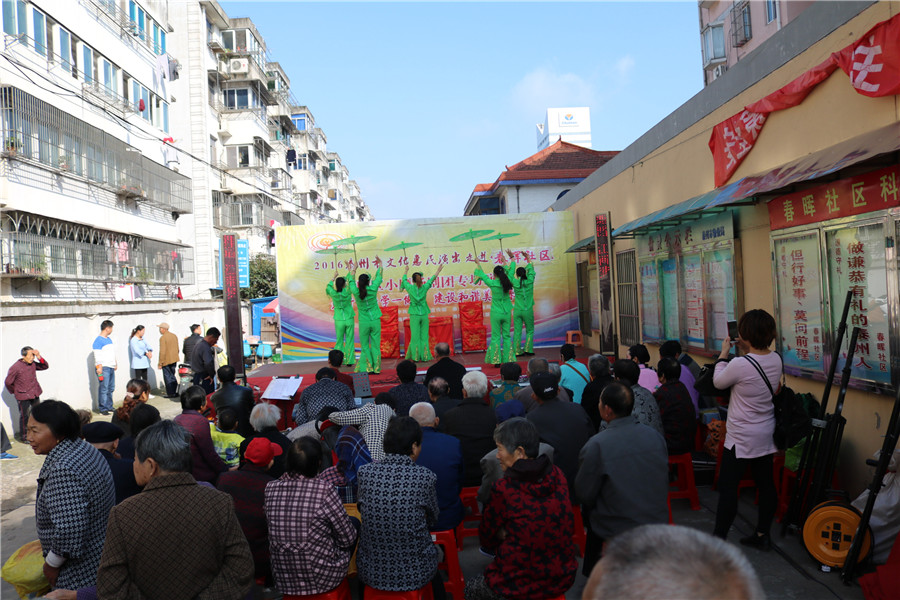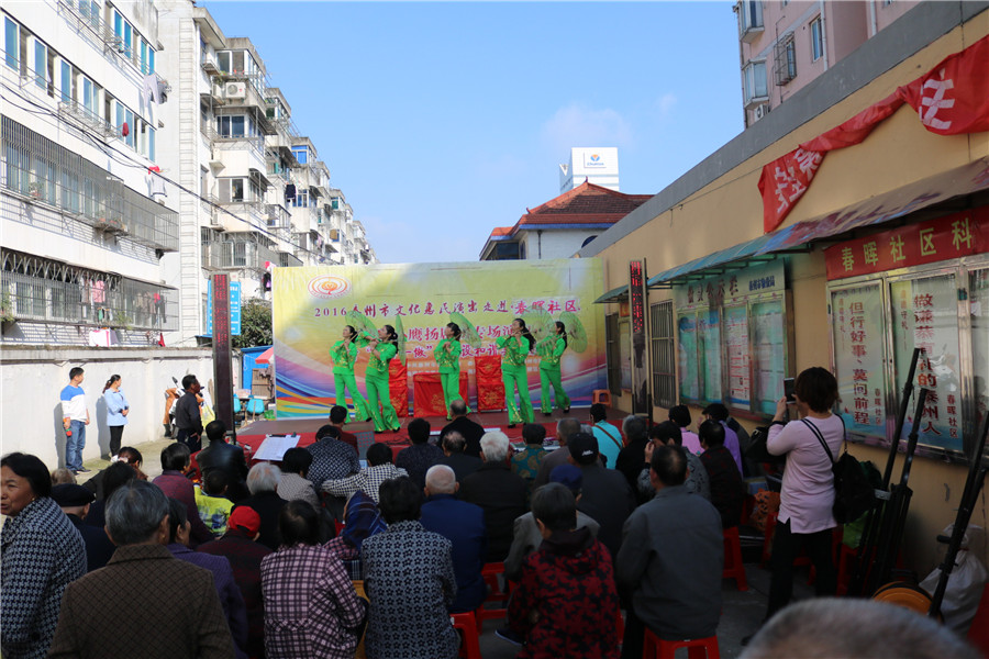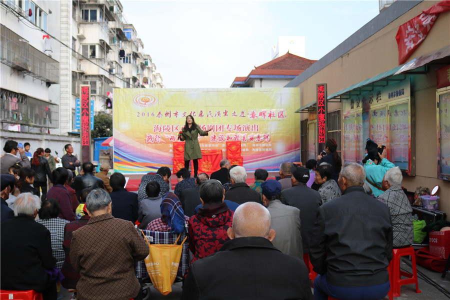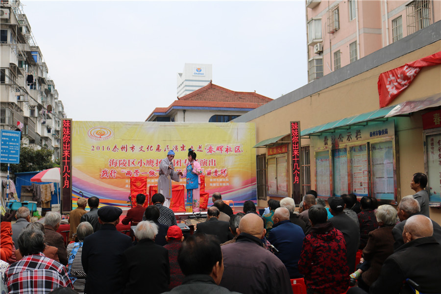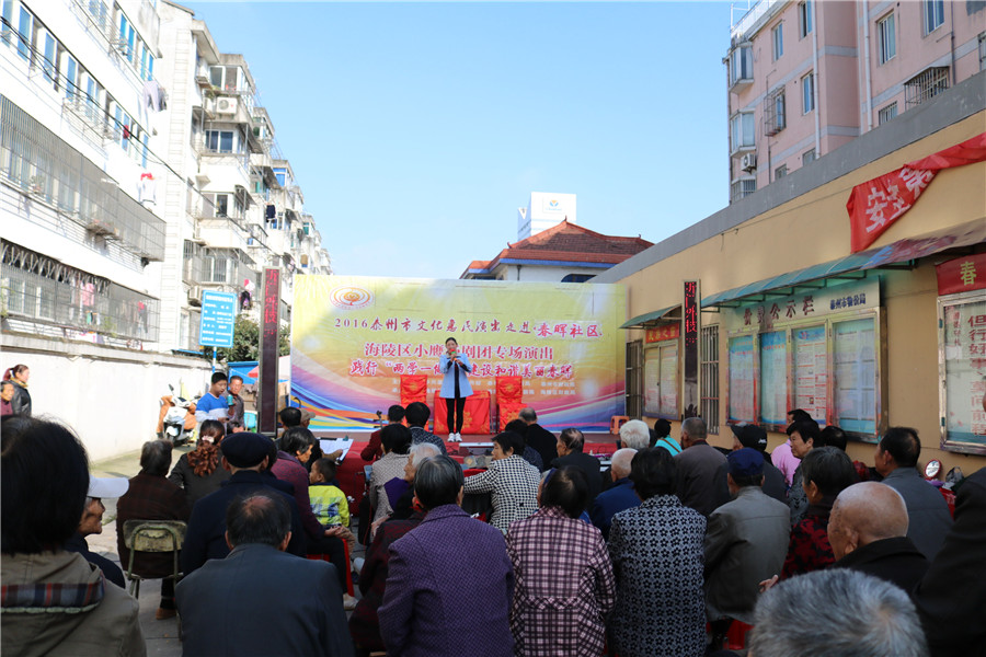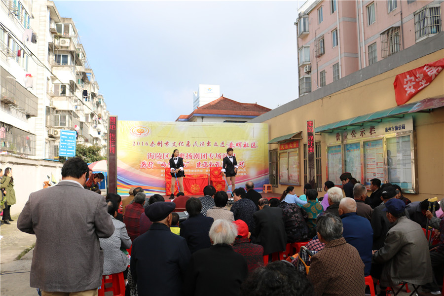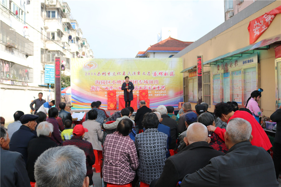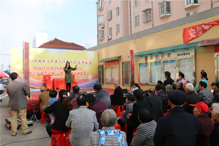 为进一步加强社区文化建设,不断满足社区居民的精神文化需求,营造文明、和谐的社区氛围,10月25日下午,春晖社区邀请泰州小鹰扬剧艺术团专场汇演,为社区居民们献上了一份丰富多彩的文化演出。