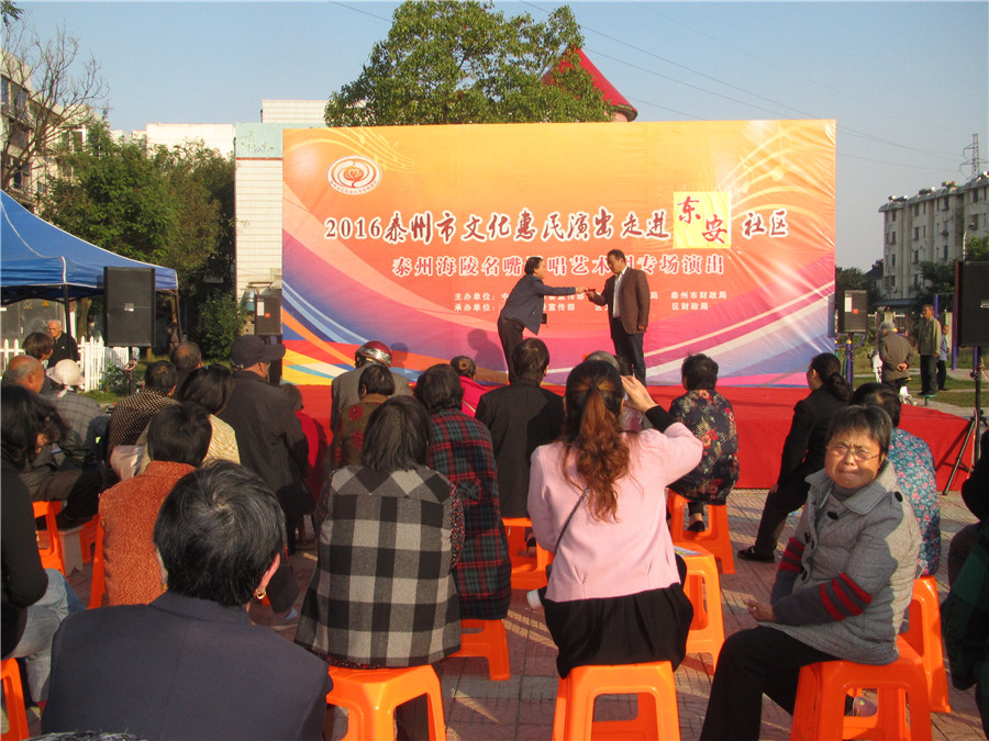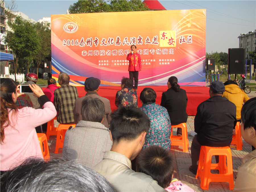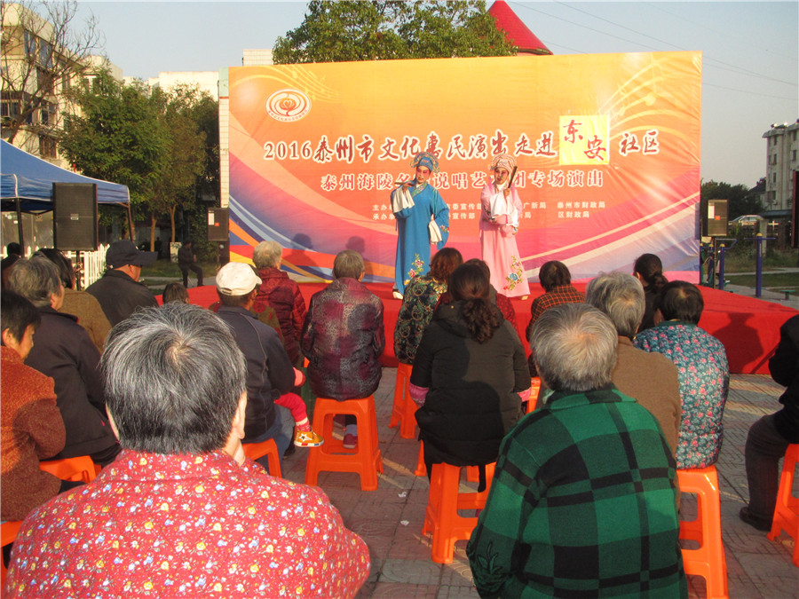 11月3日下午,泰州市海陵区名嘴说唱艺术团走进东安社区开展文化惠民专场演出,吸引了现场200多名观众驻足观看。