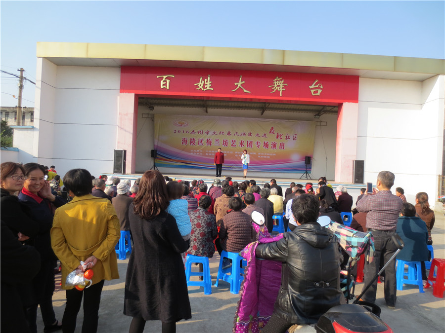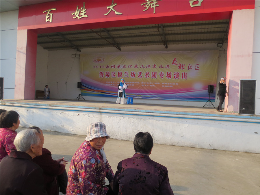 为丰富社区居民精神文化生活,11月04日下午14:30,森北社区邀请“海陵区梅兰坊艺术团”在百姓舞台上举办了一场文化惠民演出。