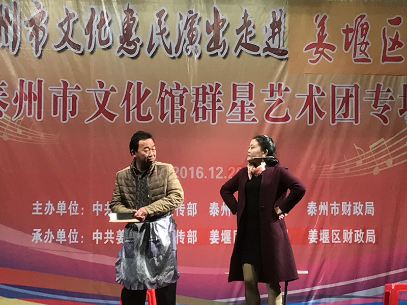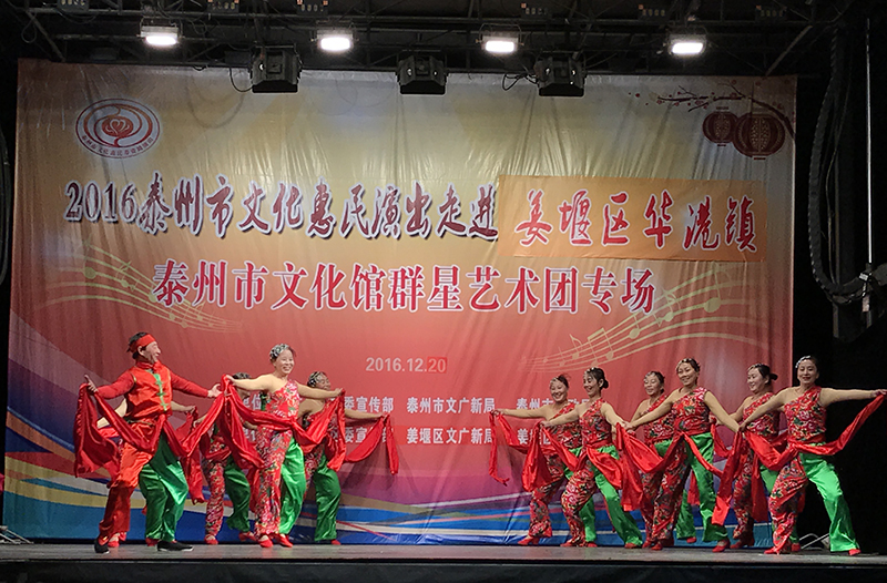 12月20日晚,泰州市文化馆群星艺术团把惠民演出带到了姜堰区华港镇,载歌载舞,与当地的百姓共享文化成果。演出的节目有歌舞、独唱、二胡、小品、杂技、鼓韵说唱、魔术等,这些节目都非常的贴近生活,很接地气,很受当地老百姓的欢迎,他们纷纷为演员精湛的演技点赞。