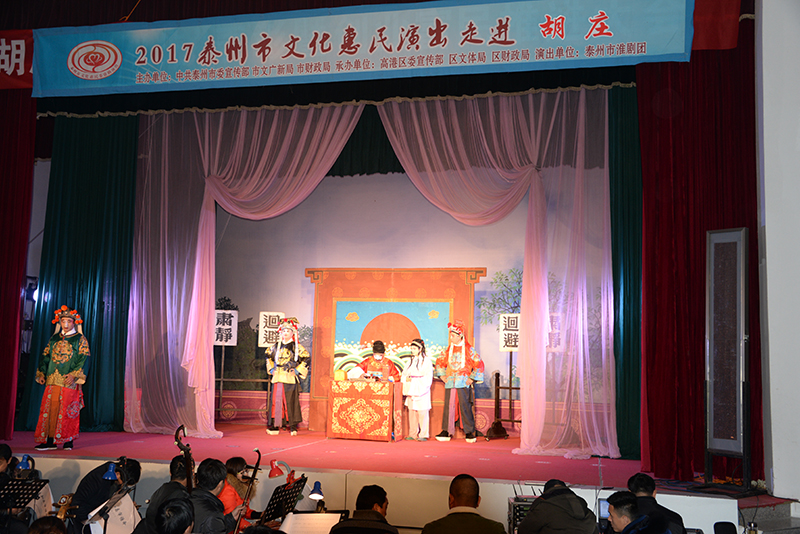 泰州市淮剧团3月14日晚应高港区胡庄镇邀请文化惠民演出活动走进胡庄镇宣传文化活动中心,为广大的居民观众带来了一台大型优秀传统淮剧《唐知县审诰命》,此剧是我团作为文化惠民演出首推保留经典剧目,讲述了严嵩之妹诰命夫人纵子程西牛强抢民女林秀英,壮士杜士卿抱打不平,格斗中程西牛被家丁误刺致死,诰命夫人率众赶赴林家,又将林秀英之父打死,此案告到按院,按院惧严嵩势焰,不敢受理,层层下推,最后落在知县唐成头上。唐成巧审诰命夫人将诰命夫人解往京城治罪,塑造了一个诙谐风趣富于喜剧性的七品知县的形象。两个半小时的演出,严谨的团风和过硬的演出质量赢得了现场数千观众阵阵掌声,扎实的唱功和专业的演技给观众留下了深刻的印象,一致堪称为基层群众送上了一道丰富的精神文化大餐。