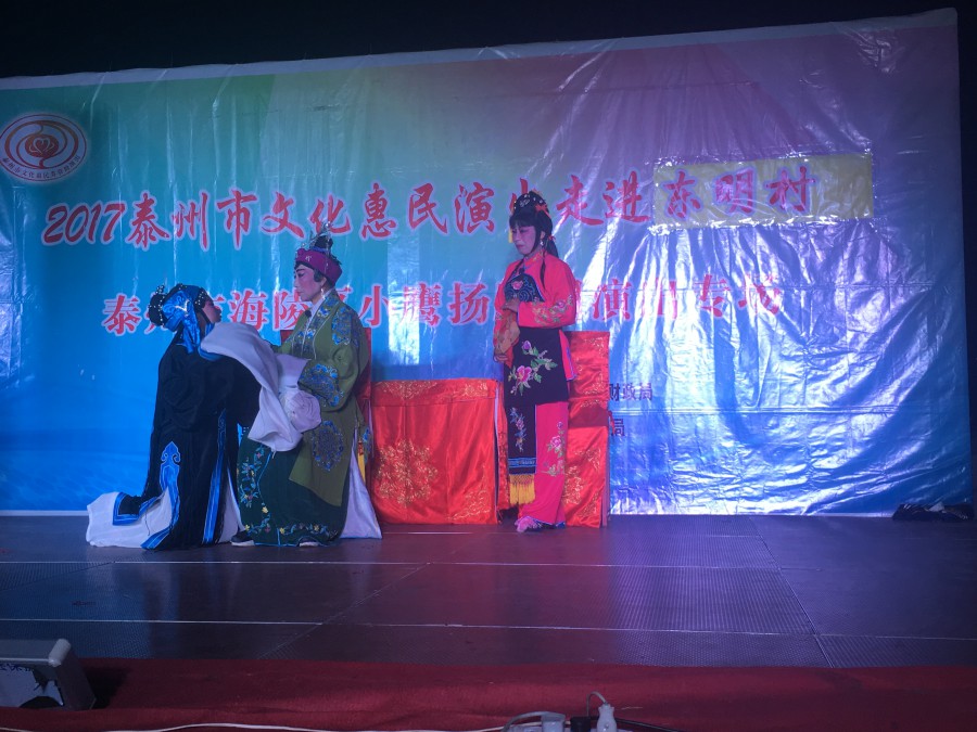 5月30日晚上,海陵区小鹰扬剧团走进泰州医药高新区明珠街道东明村东明花苑文体广场进行文化惠民演出。本场演出共为居民们演了2段经典的扬剧折子戏,分别是扬剧《僧尼下山》和扬剧《探寒窑》,虽然天气炎热,但是丝毫没有减弱老百姓看扬剧的兴致,演到精彩之处观众报以热烈掌声,大家看得很认真,也很会品戏,演出结束后大家还要求团长又加演了2段经典的选段,演出非常成功!老百姓很满意!
