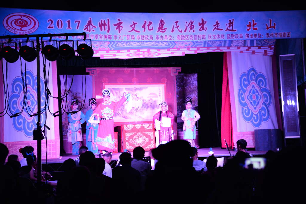 6月17日泰州市淮剧团应海陵区城北街道北山社区邀请,给居民带来一场惠民演出,两个半小时精彩的演出结束后,观众久久不愿离去,许多观众还涌向后台争相与演员合影留念,证明观众喜爱淮剧、喜爱欣赏我们泰州淮剧团的演出,我们将在今后的演出中不断精益求精,把更多更优的剧目展现给广大戏迷朋友,使广大居民在欣赏悠久的传统戏剧的同时达到寓教于乐的效果。