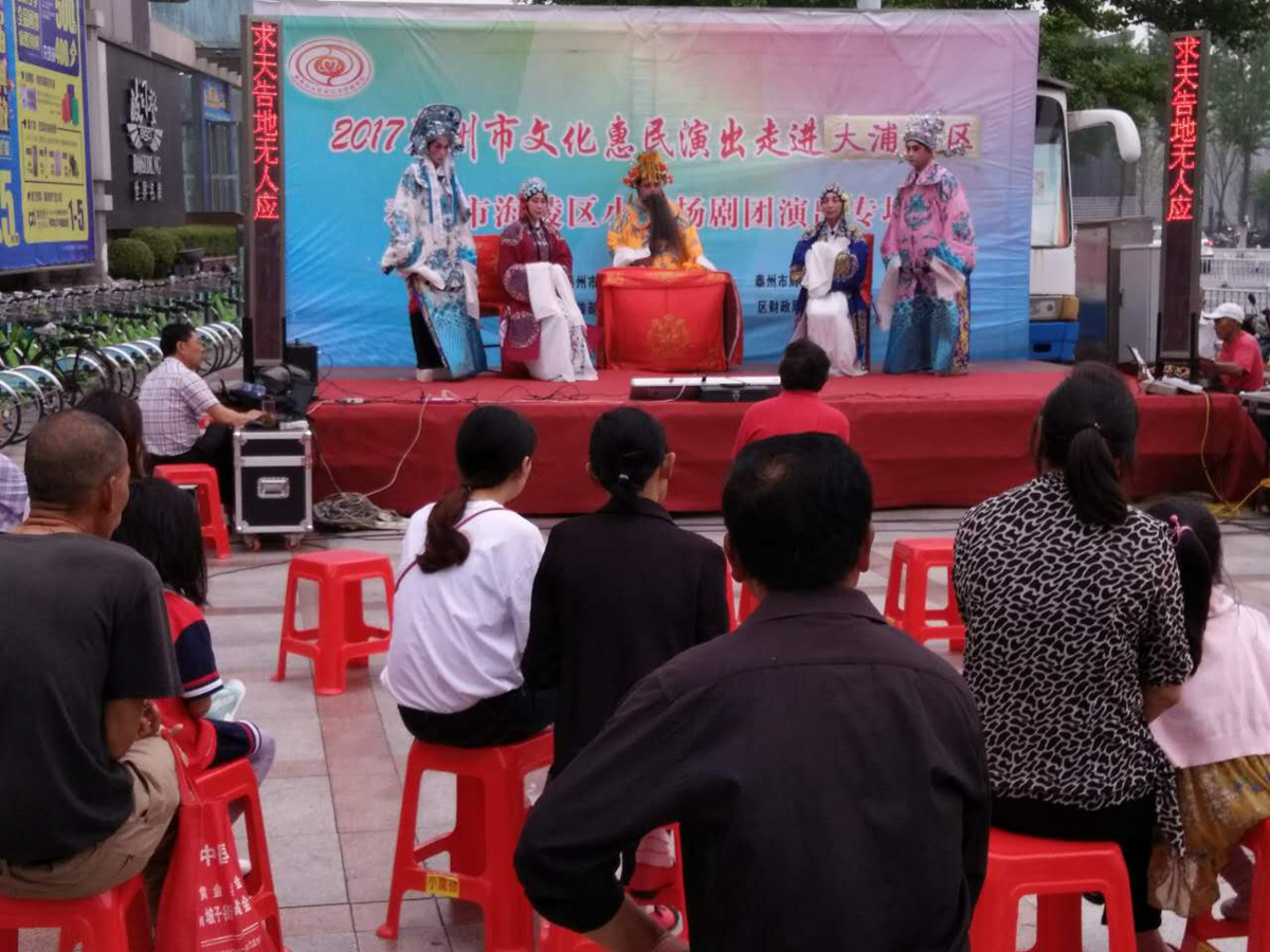 2017泰州市文化惠民演出走进大浦社区,泰州市海陵区小鹰扬剧团专场演出,6月21日下午16时在泰州市中百一店东北门前广场成功举办,精彩的扬剧演出吸引了许多过往的顾客,本次活动演出了经典扬剧《僧尼下山》和《安寿宝卖身》下集全场,受到了观众的一致好评!演出非常成功!感谢大浦社区和中百一店的领导给予本次活动提供全方位的服务!