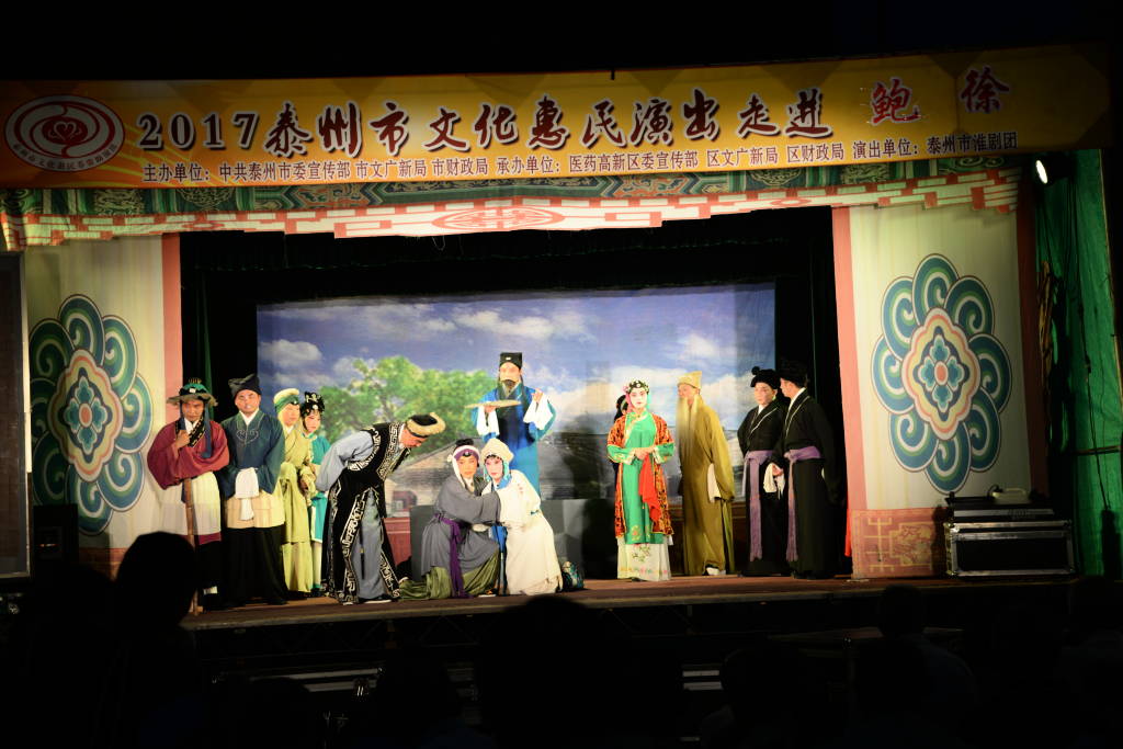 6月21日,泰州市淮剧团应医药高新区明珠街道鲍徐社区的邀请,为鲍徐社区居民带来的一台大型优秀经典淮剧《乌龙院》,此剧是根据京剧表演艺术家周信芳先生的名剧《乌龙院·坐楼杀惜》改编移植而来,剧中人物的性格特性鲜明,是一部反映忠、孝、节、义比较显著特点的剧目,全场观众在短短两个半小时的演出中多达数十次的掌声,这是对剧本给予的肯定、是对所有舞台上演职人员精彩表演的肯定,今后我们团将积极创作更多的精品力作为基层百姓服务,做到每部戏能让观众在欣赏中寓教于乐,努力做到能让所创作的剧目上接天线下接地气。