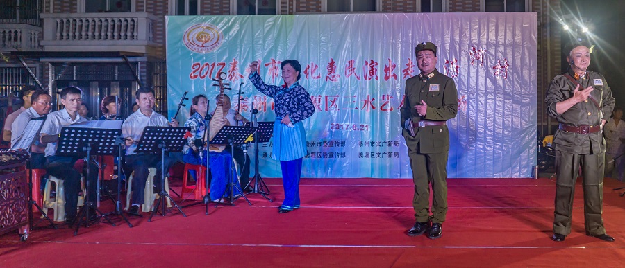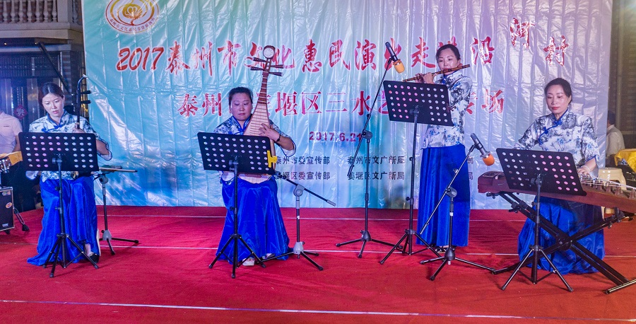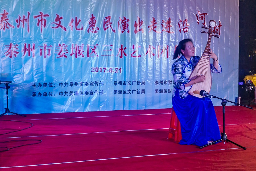 6月19日晚,姜堰区三水艺术团应罗塘街道沿河村邀请,2017年文化惠民券首场演出在沿河村蛮庄小广场演出。姜堰区三水艺术团精心准备了12个节目。不仅有三水艺术团的拿手戏:民乐合奏、笛子独奏、琵琶独奏等,还有小品、男女声独唱、诗朗诵等。更有乡亲们喜欢的锡剧、京剧等。节目个个精彩,现场气氛热烈。观众掌声不断,整场演出受到了广大群众的一致好评。当晚演时长约110分钟,观众约320人。