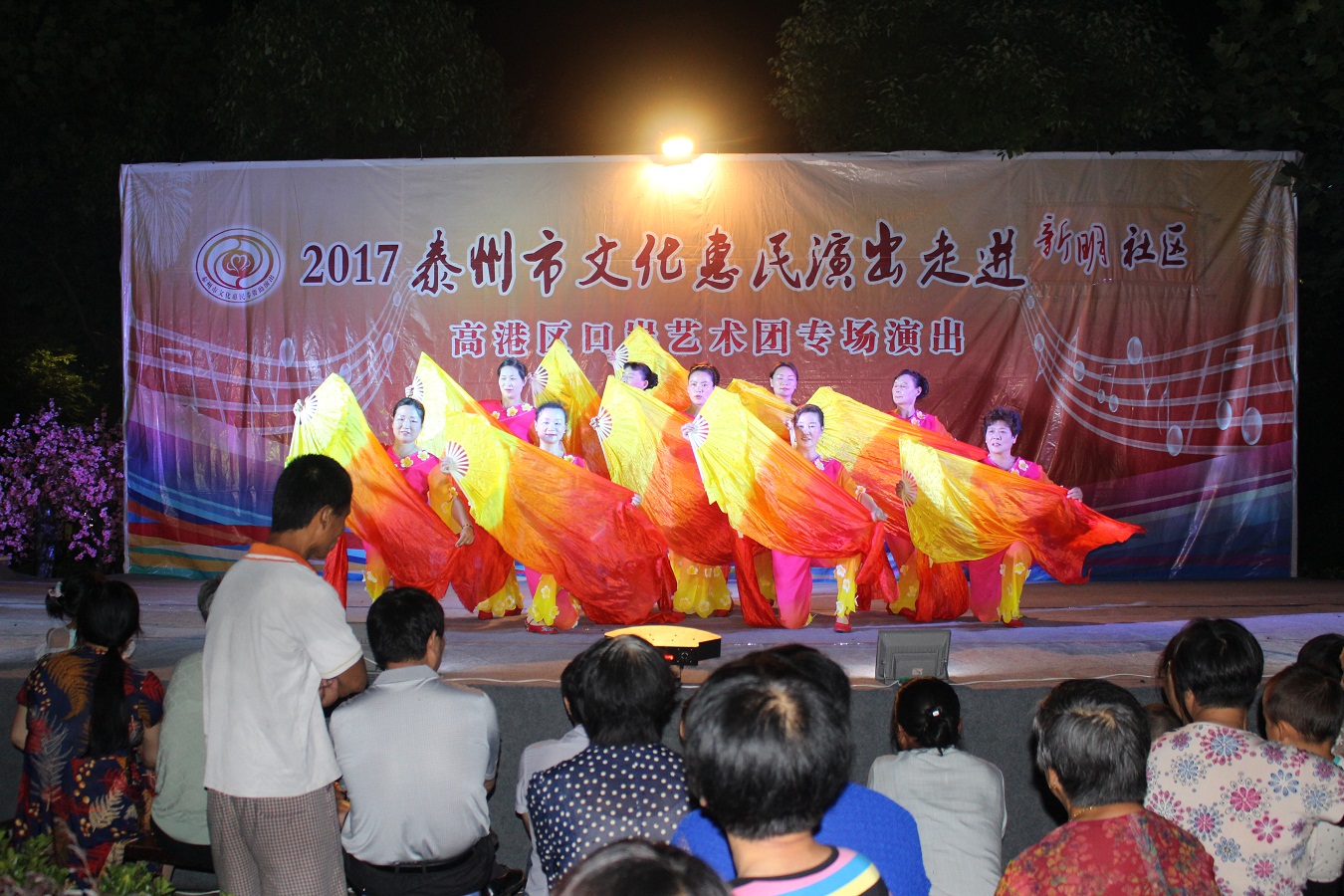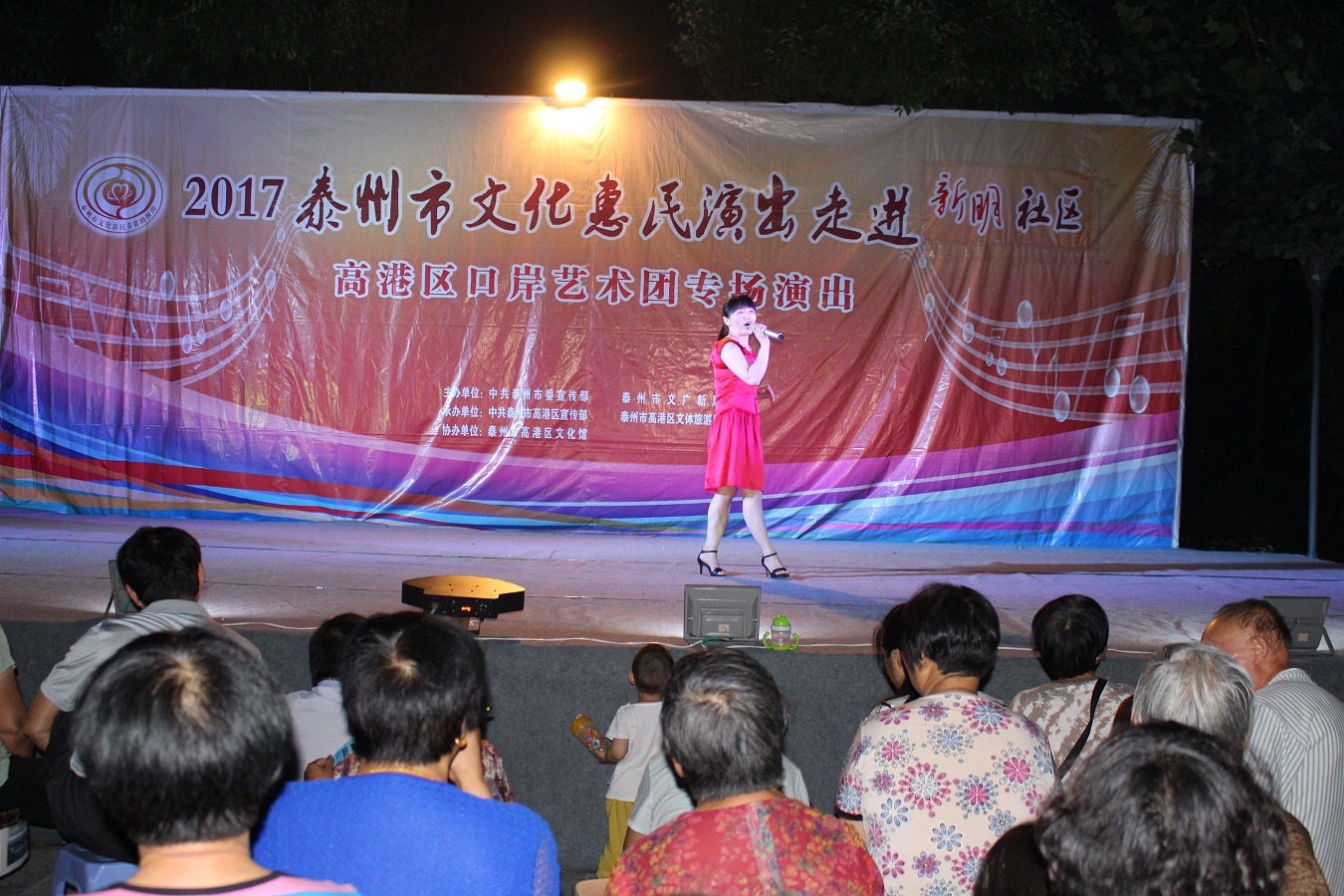 2017年6月24日晚7点半,高港区口岸艺术团走进了美丽的口岸街道新明社区,上演了一场形式多样内容丰富多彩的文化盛宴,赢得社区1000多名现场观众的广泛赞誉。