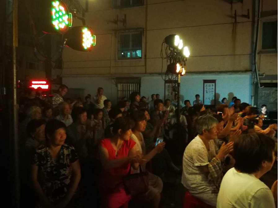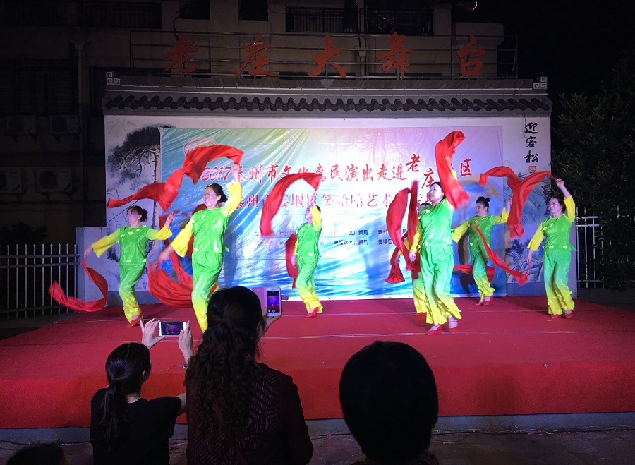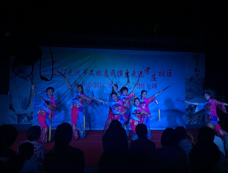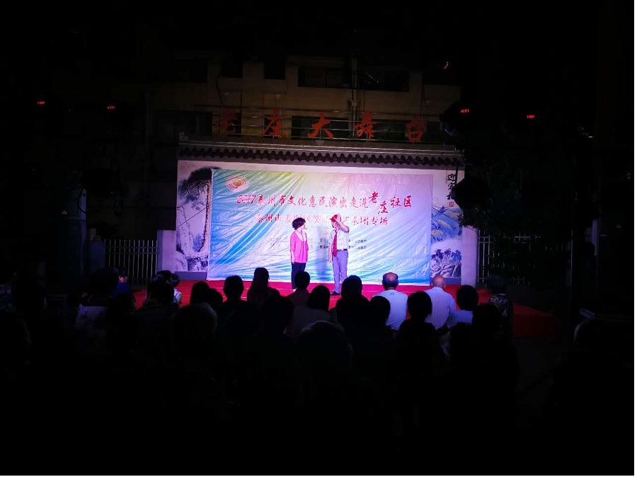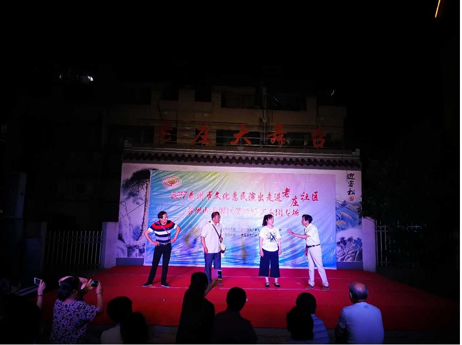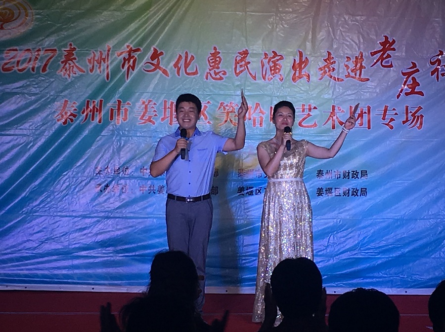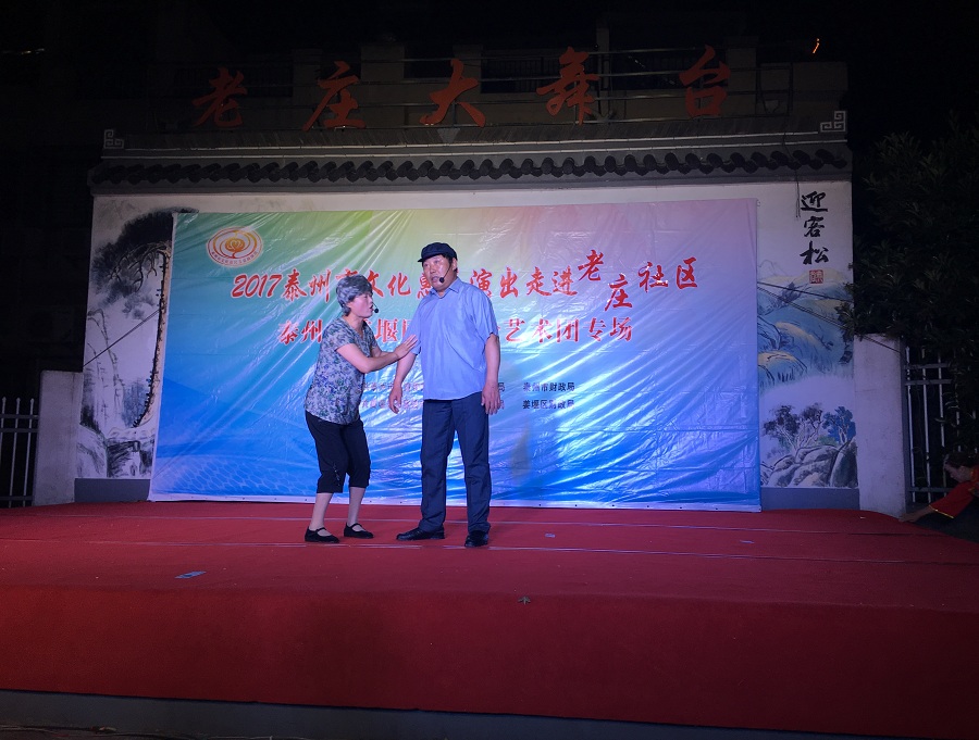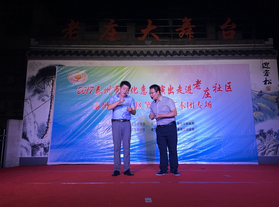 6月25日,姜堰区笑哈哈艺术团文化惠民专场演出走进罗塘街道老庄社区。晚上7点演出在老庄社区大舞台准时开始,现场表演的节目有舞蹈《红红火火大中华》、莲花落说唱《莲花一打笑哈哈》、方言韵白《洗澡》、萨克斯演奏《北国之春》、喜剧小品《老娘舅》、天津快板《有话好好说》、相声《趣说泰州话》、越剧梁山伯与祝英台选段《十八相送》、表演唱《财政惠民乐农家》、以及独唱等11种形式、12个节目。整台演出时长115分钟,观众约500人左右。节目形式多样、内容丰富,尤其相声、快板、喜剧小品、方言韵白等语言类特色节目赢得了观众的阵阵笑声和掌声,受到了社区干部、群众的一致好评。