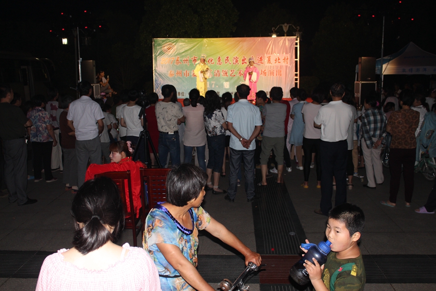 6月23日,姜堰区清瓴艺术团惠民演出走进沈高镇夏北村。夏北村是沈高镇政府所在地,居民居住集中,人口密集,群众文化娱乐生活丰富。惠民演出在镇宣传文化中心广场举行,观众观看演出热情高涨。整场演出在欢快热烈的舞蹈《鼓动天地》拉开了序幕,台上台下掀起了欢乐的高潮。小戏剧《十八相送》赢得了观众热烈的掌声,小品《上代做给下代看》让中老年观众受到深刻的启发教育,演出在舞蹈《张灯结彩》中结束。整场演出两个多小时,观众流连忘返,纷纷称赞在家门口享受了一场文化盛宴。