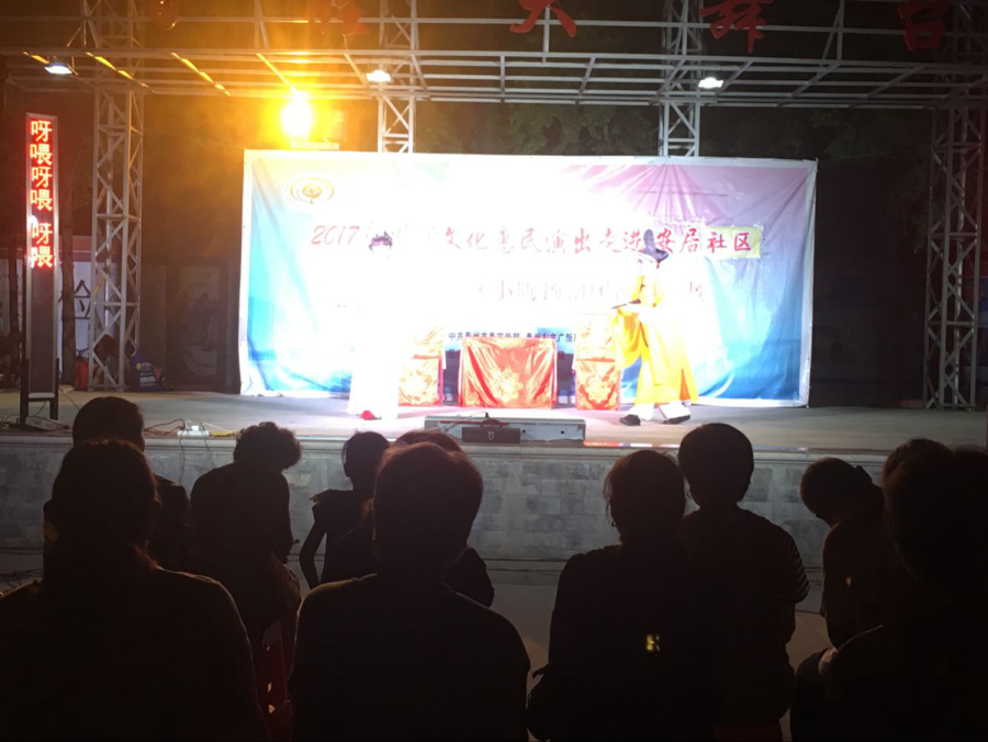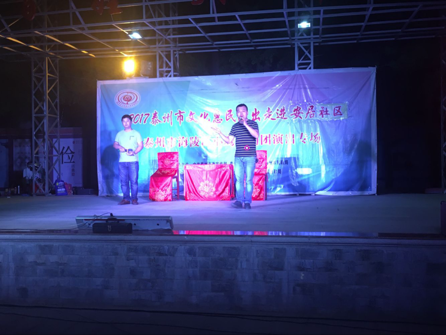 2017泰州市文化惠民演出走进安居社区,泰州市海陵区小鹰扬剧团专场演出,2017年6月28日晚上在泰州市海陵区城西街道安居社区百姓大舞台成功举办。演出持续2个多小时,演出中演员们的精彩表演唱赢得了戏迷观众的阵阵掌声,演出结束后,应戏迷观众的要求又加唱了几段扬剧经典唱段。演出非常成功!