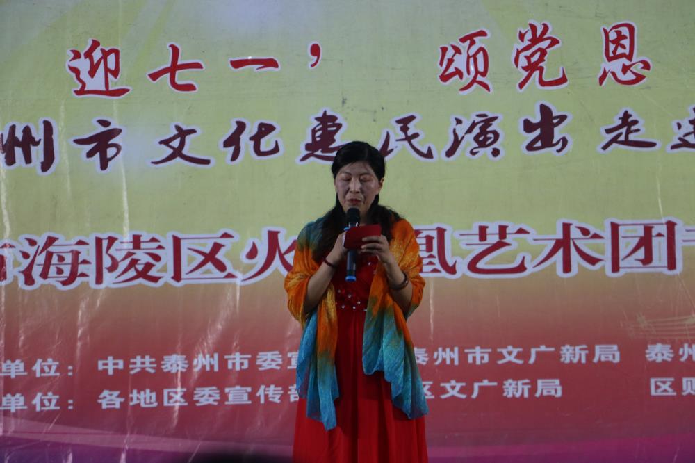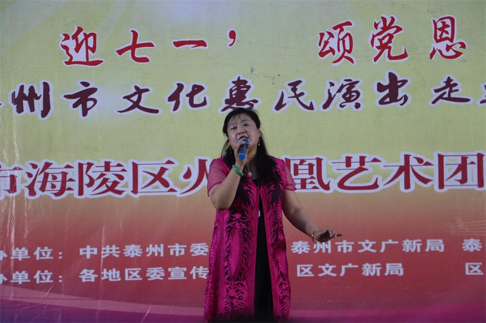 火凤凰艺术团队员们,承受着桑拿天气,拿出最強的意志,克服艰难困苦,坚持演出。 用颗心,用份情,用份珍惜,再用一股孑努力,换来台下掌声一片,通过歌舞的绽放,感觉掌声的美好,体验精神富足,舞台的地扳也在"燃烧",小宝宝都看乐了。 今晚主题之一是迎七一,报党恩,报社记者现场采风,数百的观众近半数以上也在拍照,一片热闹景象。 该区领导再三言谢,要求再来。