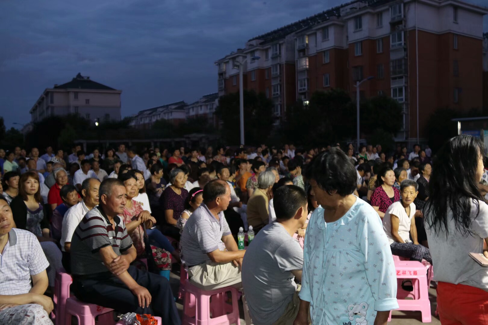 2017年7月2日晚,位于高港区刁铺街道育才小区的广场人头攒动,热闹非凡。应高港区刁铺街道通太社区的邀请,高港区浪花起舞艺术团今天走进通太社区,为社区居民展示精美的文化大餐。这次演出我团共45人参加,演出节目16个,随着欢快喜庆的音乐想起,舞蹈《张灯结彩》拉开了演出序幕,节目内容丰富多彩,有快板、诗朗诵、地方戏唱段等,表演唱《四大嫂夸健康》更是把演出推向高潮,获得经久不息的掌声,每个节目都深受社区观众的喜爱,演出现场气氛十分火爆,观看人数达500人左右,近2小时的演出,让观众流连忘返,深受通太社区干群的一致好评!