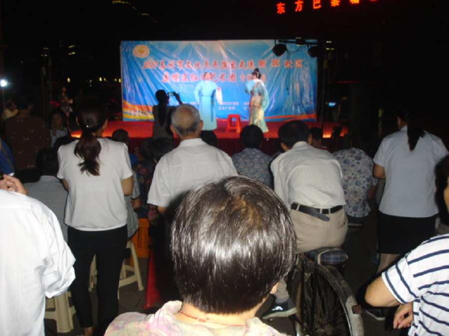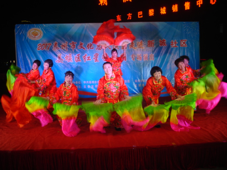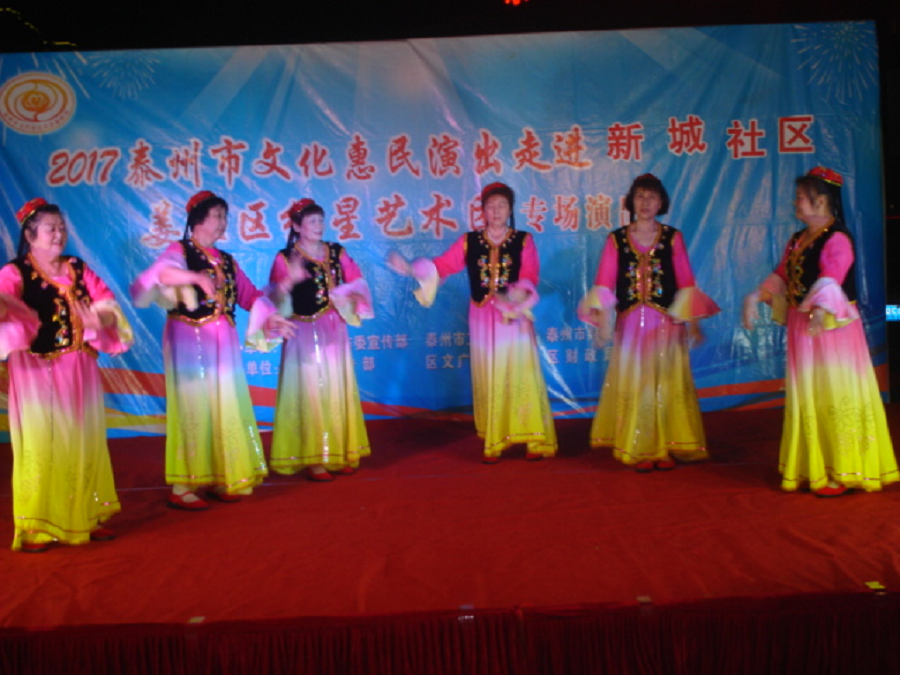 红星艺术团应新城社区的邀请走进新城社区演出,受到观众们热烈欢迎。红星艺术团在各社区演出受到一致好评,影响力很大,在邻村演出新城的不少观众就听说红星艺术团的节目精彩,所以,观众特别多,红星艺术团精彩的表演迎来热烈的掌声。